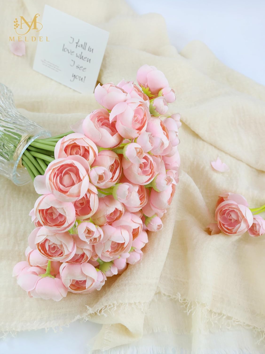 32Pcs Ranunculus Artificial Flower, Faux Silk Mini Pink Ranunculus Flowers for DIY Bouquet, Bulk Fake Peony Wedding Filler Flowers for Centerpieces Arrangements Bridal Shower Decorations