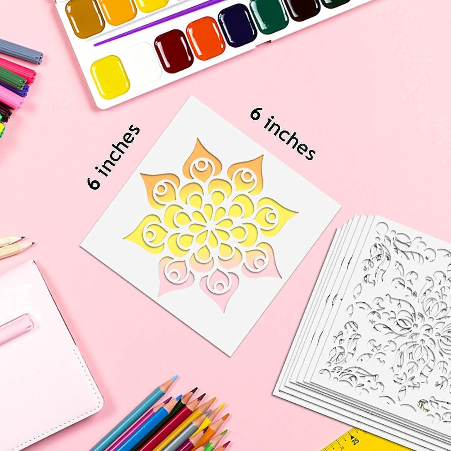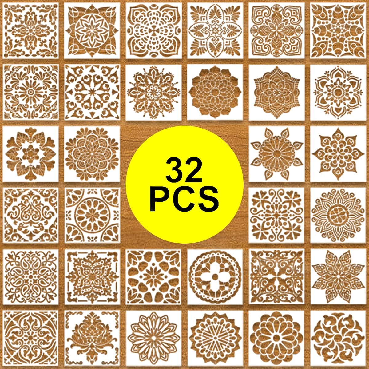 32-Piece Mandala Stencil Set (6 x 6 Inch) – Reusable Flower & Geometric Templates for Painting on Wood, Rangoli, Wall, Floor, Tile, Fabric & DIY Decor