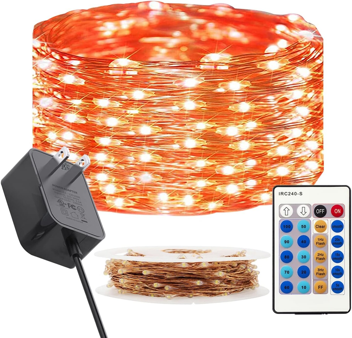 33 Ft 100 LED Orange Fairy String Lights – Dimmable Copper Wire with Remote, Plug-in, Flexible & Waterproof (Orange)