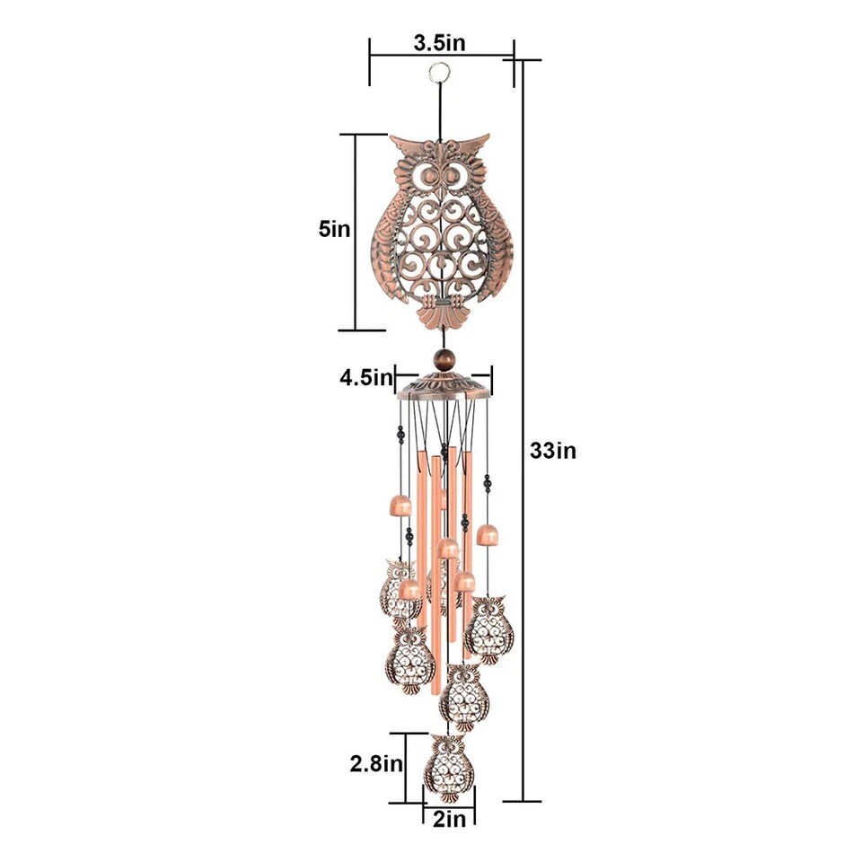 33" Owl Metal Wind Chime with Aluminum Tubes – Outdoor Garden & Yard Décor Gift