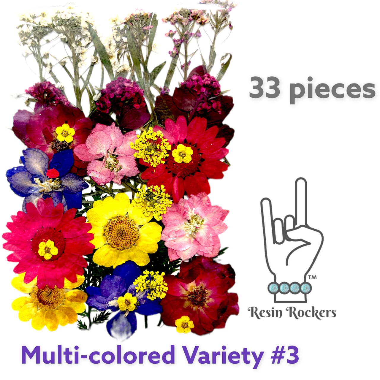 33 Piece Multi-colored Variety #3 Dried Pressed Real Natural Flowers For Epoxy & UV Resin Art