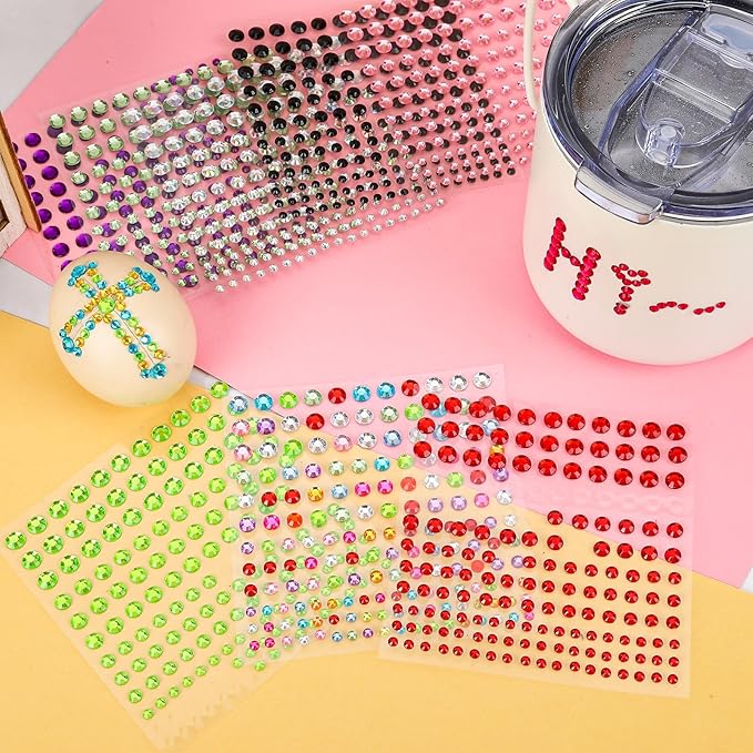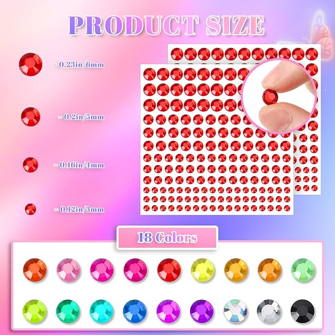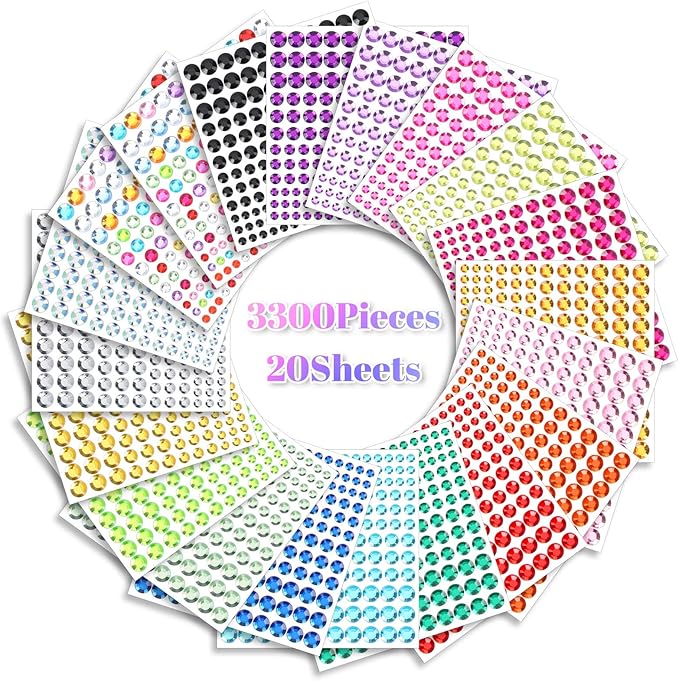 3300 Pcs Self-Adhesive Face Rhinestones Gems Stickers – 4 Sizes of Bling Stick-on Jewels for Hair, Face, Body, Makeup, DIY Crafts, and Card Decorations