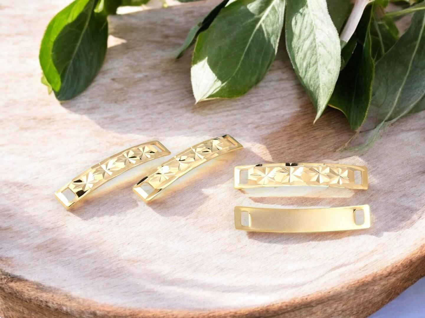335x6mm 24k Gold Plated Curved Rectangle Link Connectors - 2pc