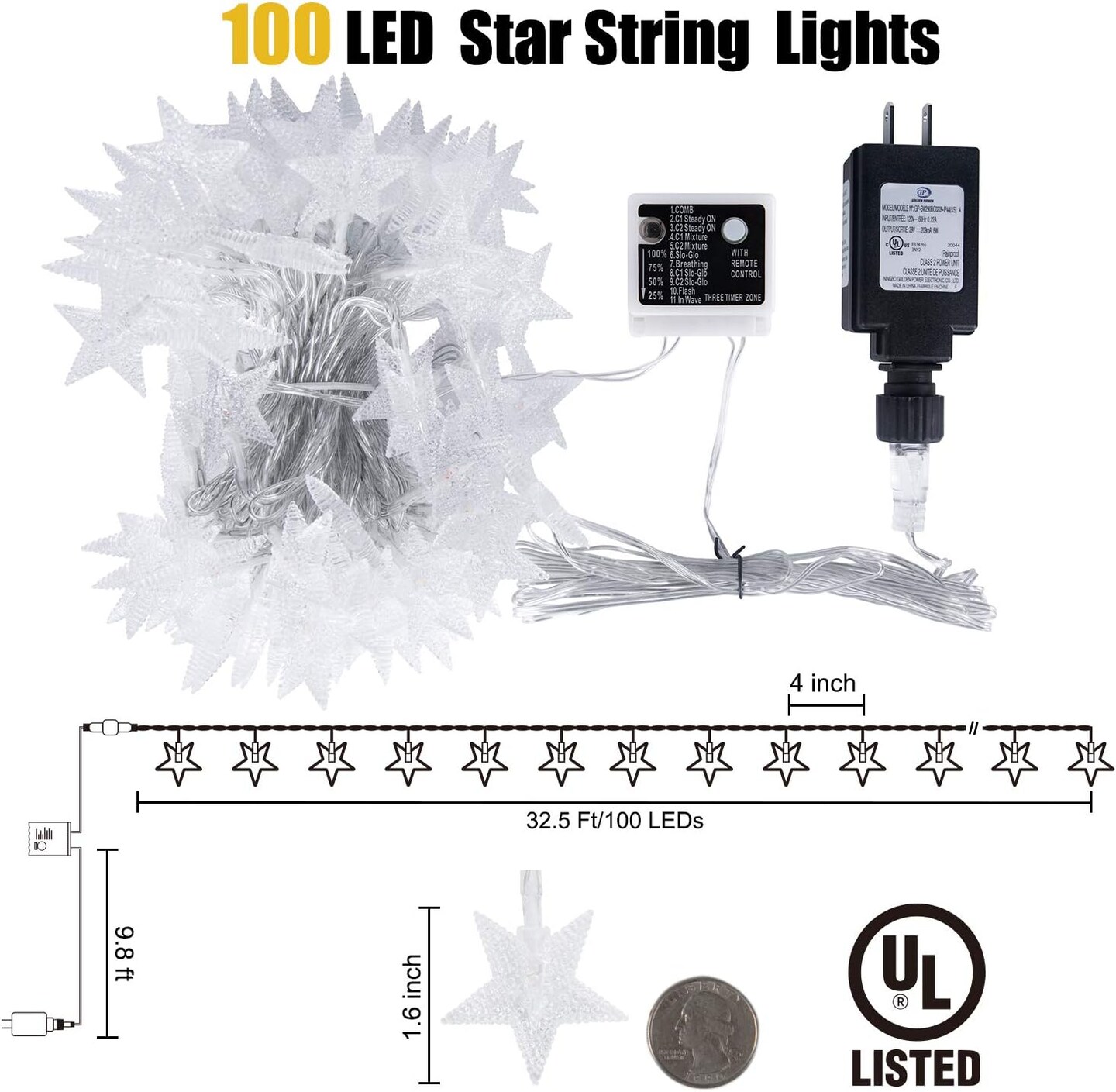33ft 100 LED Star String Lights with Remote & Timer – Waterproof Fairy Lights for Bedroom, Patio, Wedding, Party & Garden Décor (Warm White)