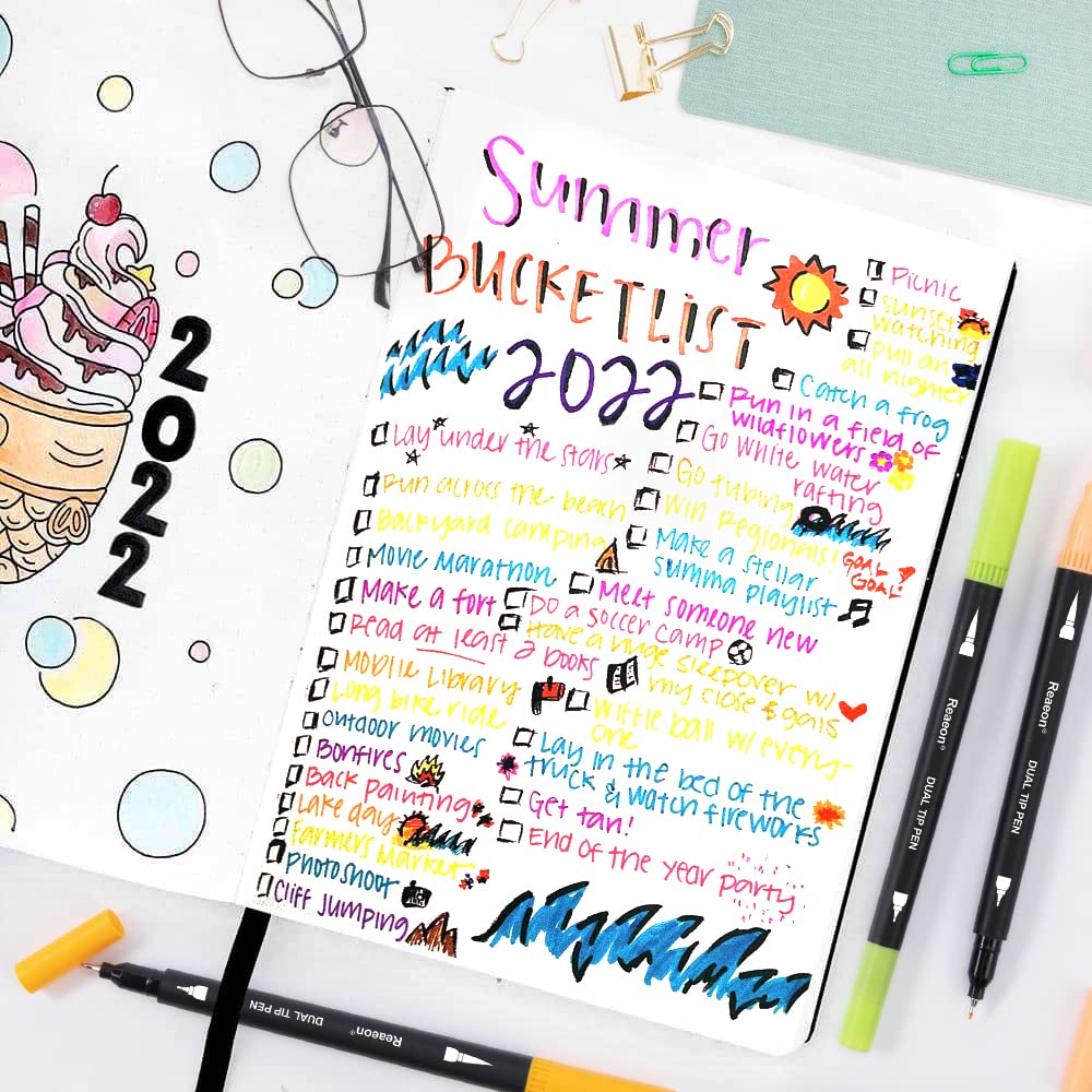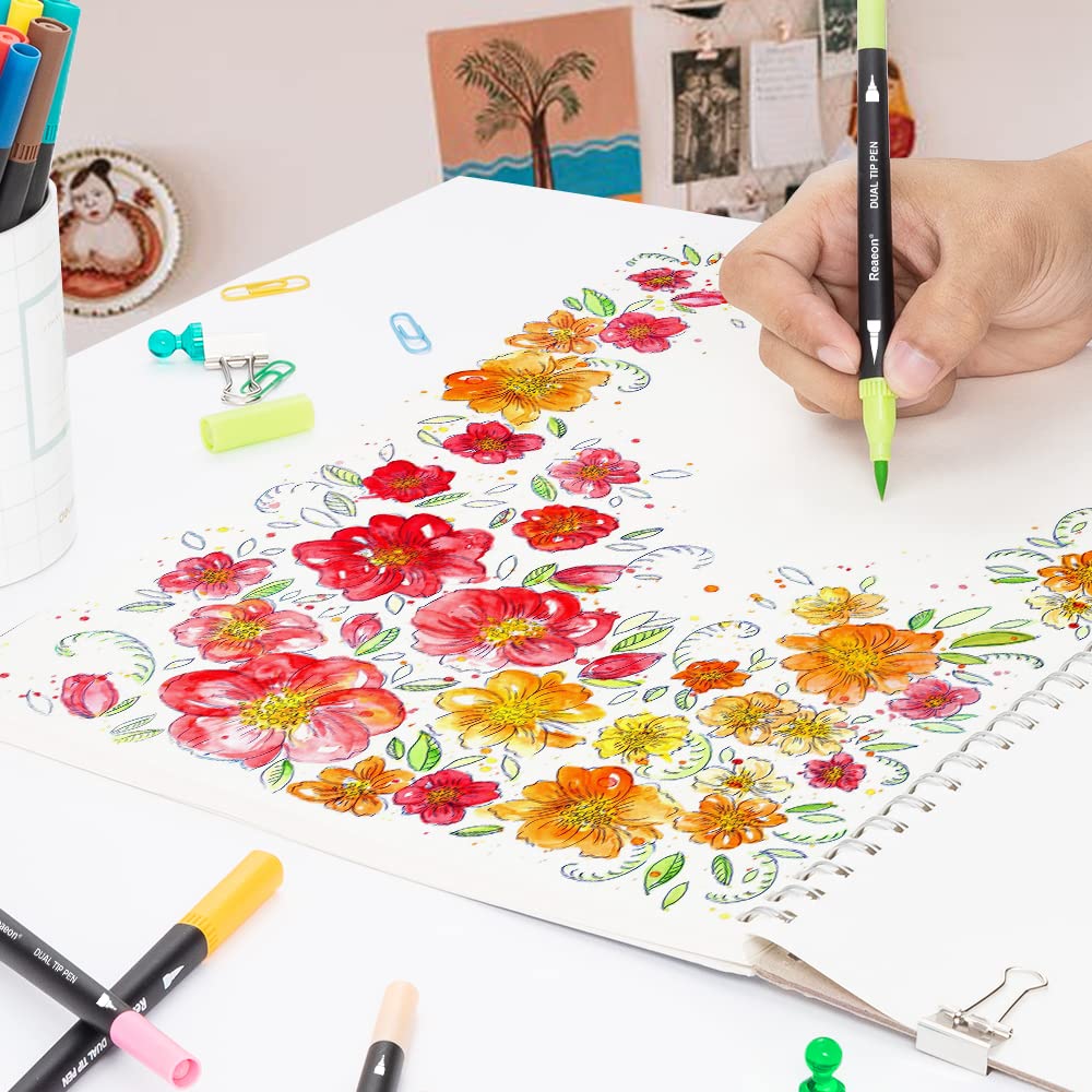 34 Coloring Markers Pen, Dual Brush Tip Marker for Adult Coloring, Calligraphy Fine Tip Pen for Beginner Journal Planner, Drawing, Doodle