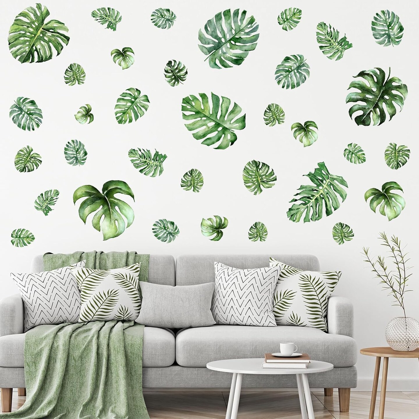 34 Pcs Large Palm Leaves Wall Decals Tropical Leaves Wall Stickers