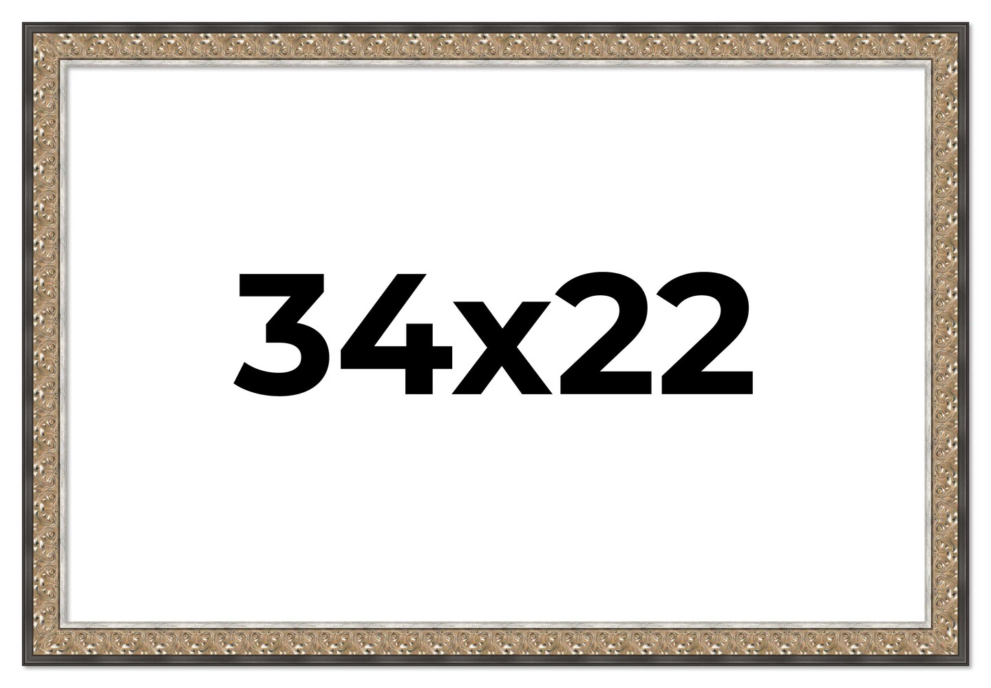 34x22 Ornate Silver Picture Frame - UV Acrylic, Foam Board Backing, Hanging Hardware