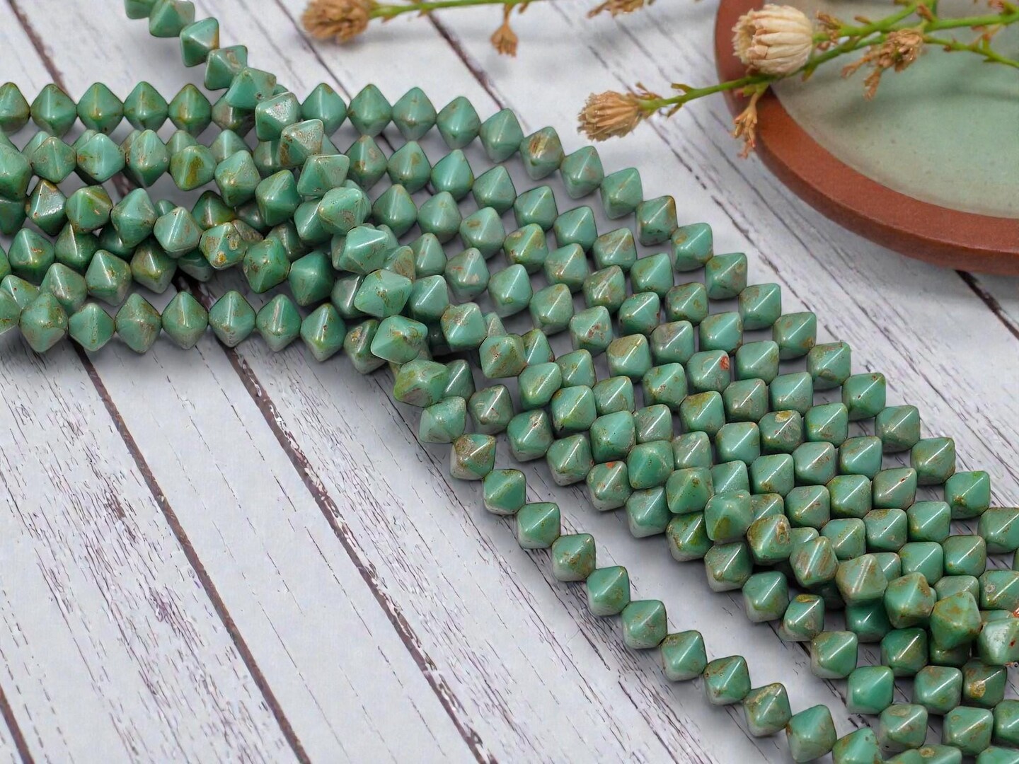 *35* 6mm Opaque Turquoise Travertine Lucerna Bicone Beads