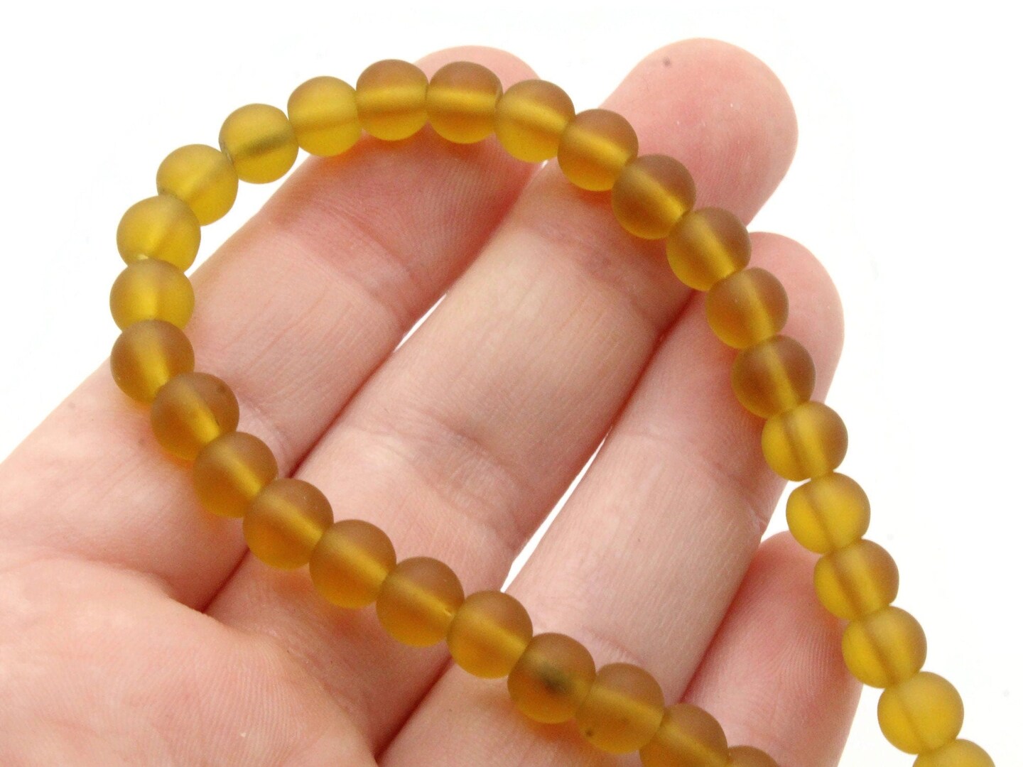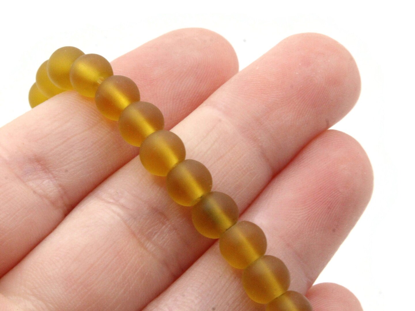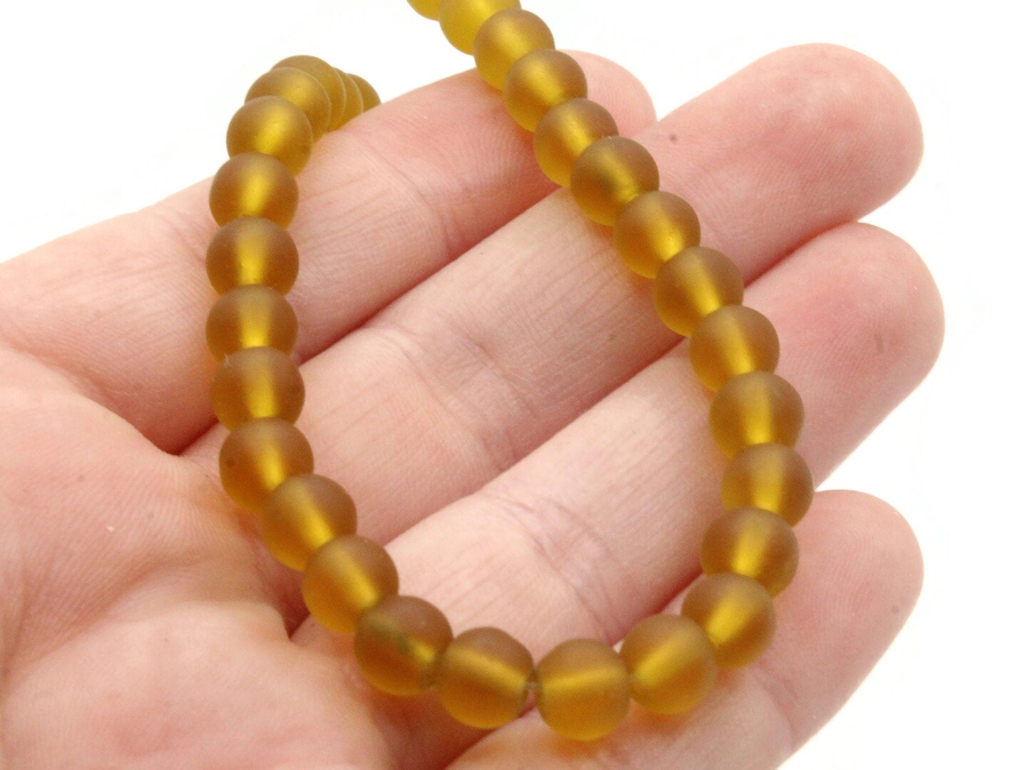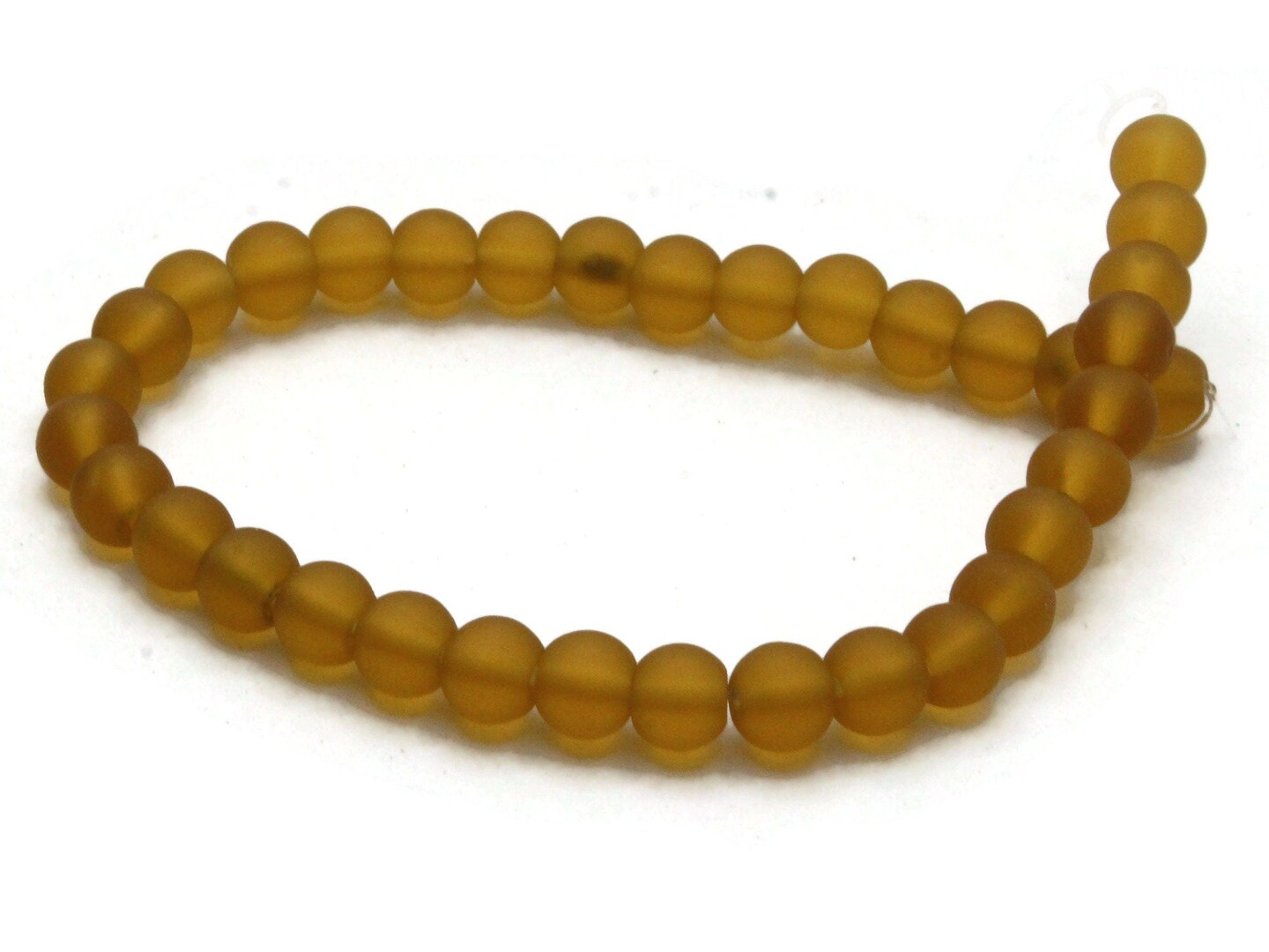 35 7mm Clear Honey Brown Frosted Glass Smooth Round Beads