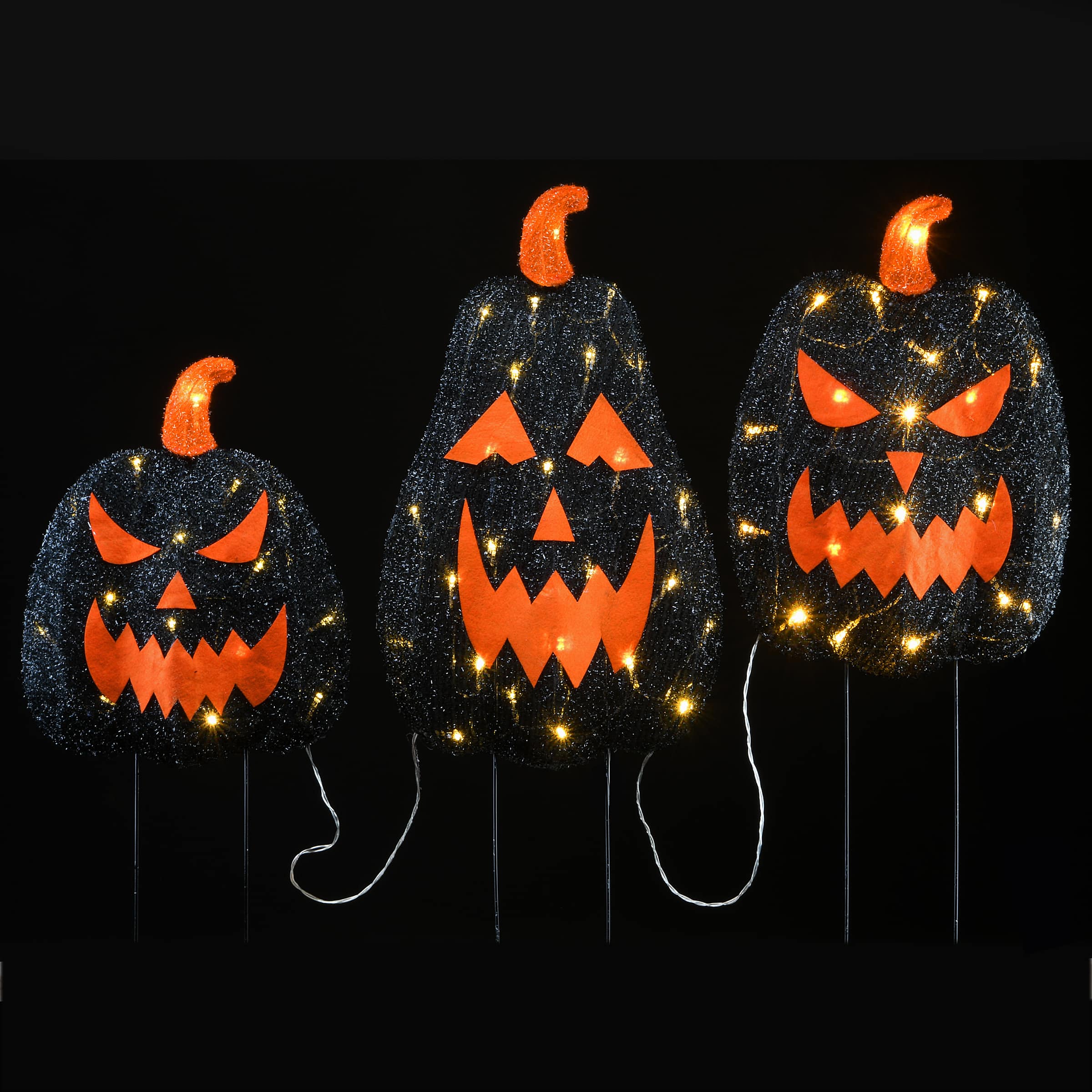 35" Black LED Jack-O-Lantern Halloween Garden Stakes