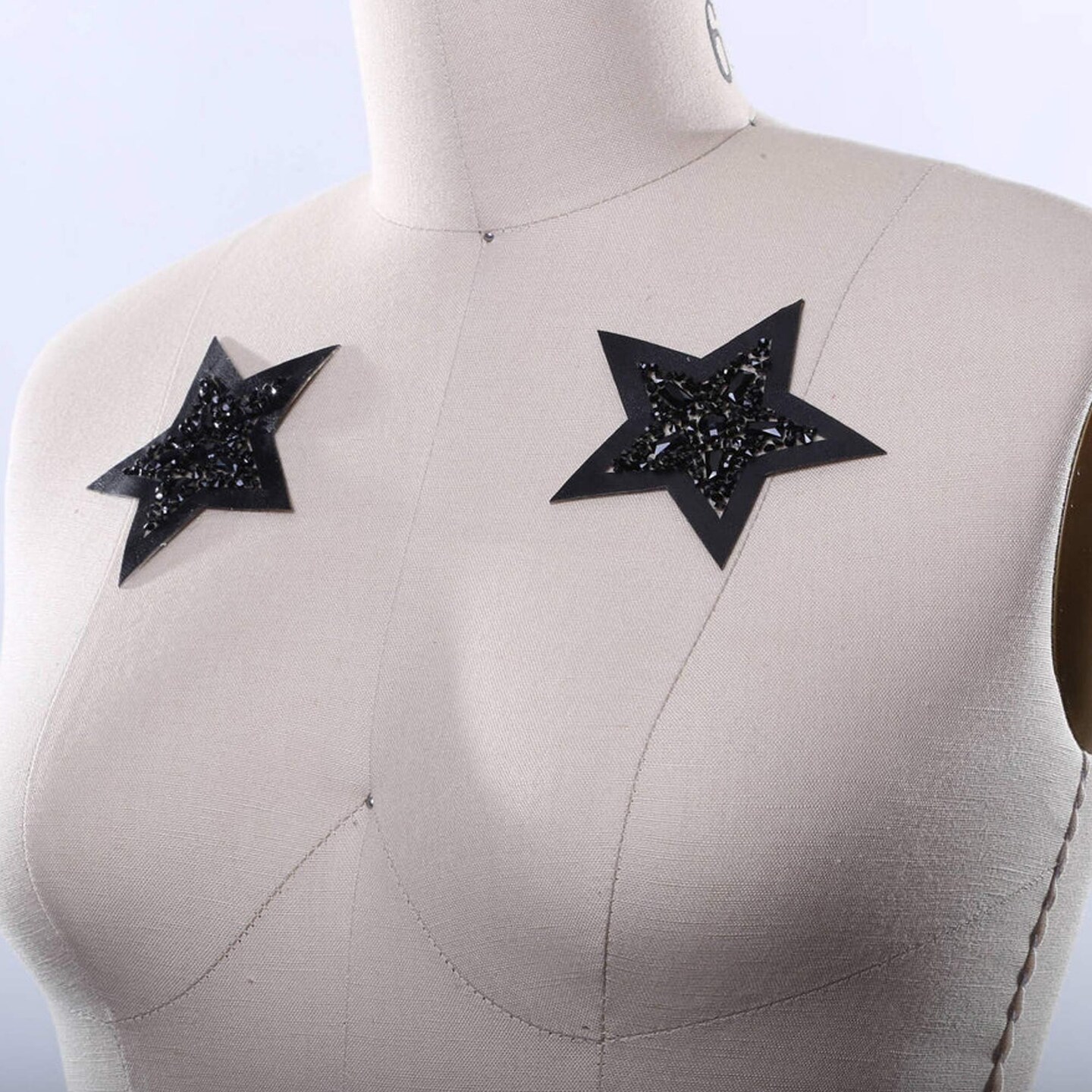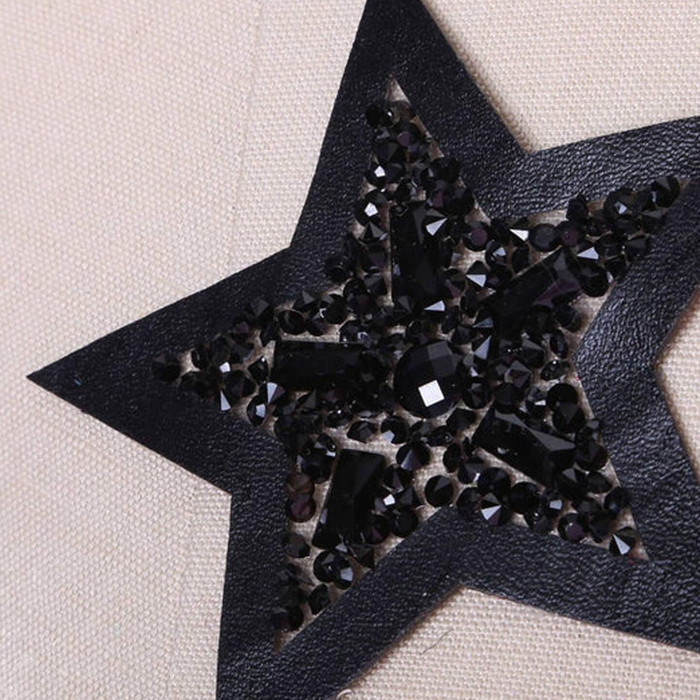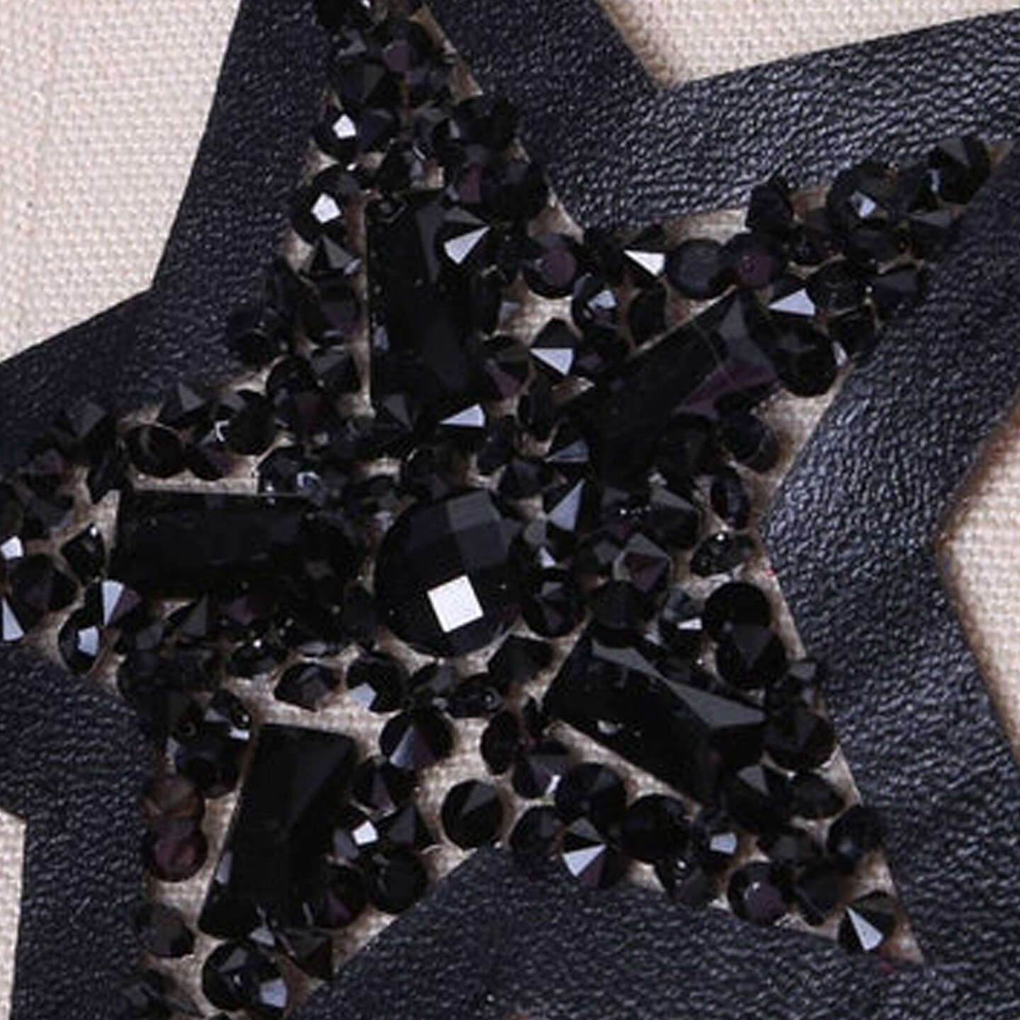 3.5" Black Star with Faux Leather Beaded Iron On Applique Large Patch