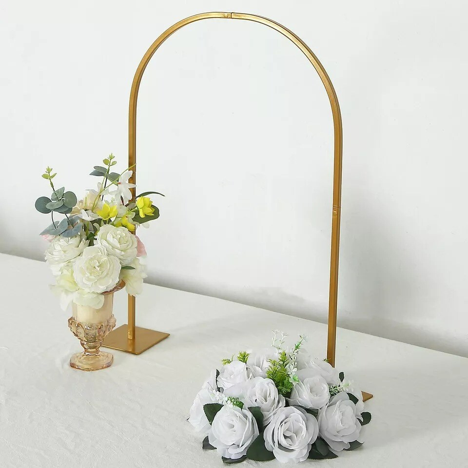 35" Gold Metal Floral Chiara Arch Table Centerpiece with Rounded Top Wedding