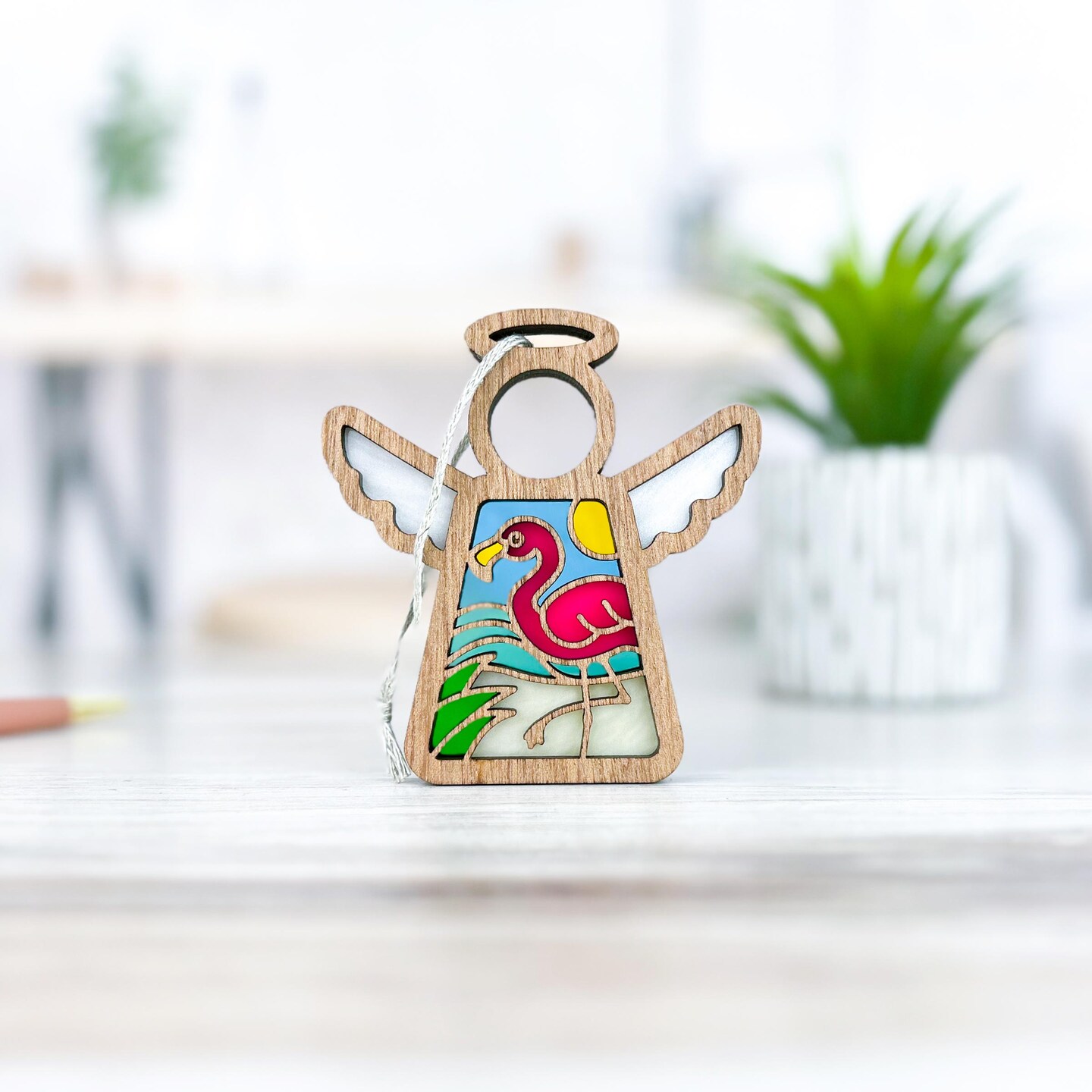 3.5" (H) Flamingo Beach Ornament - Handcrafted in Texas - Mother's Angels® Christmas Angel Wings Figurine