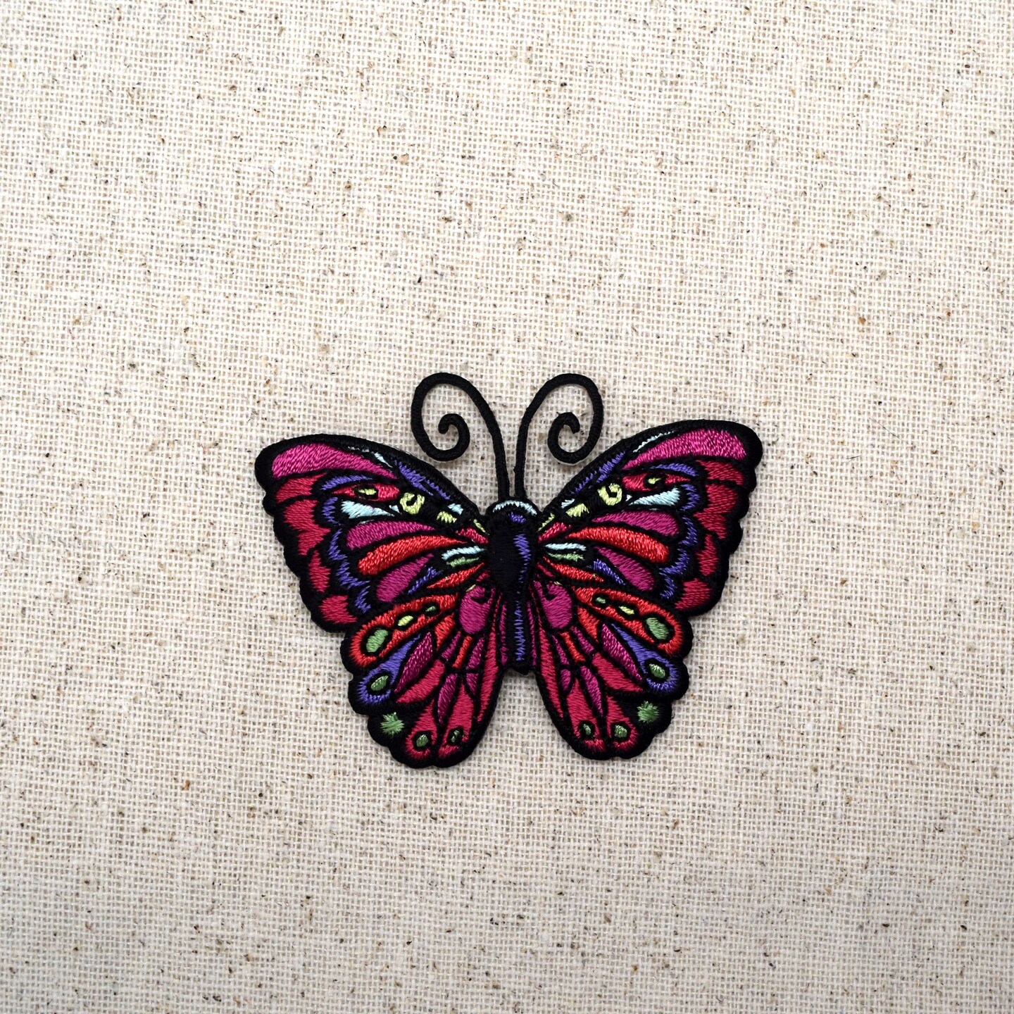 3.5 inch Pink Jewel tone Butterfly Embroidered, Iron on Patch