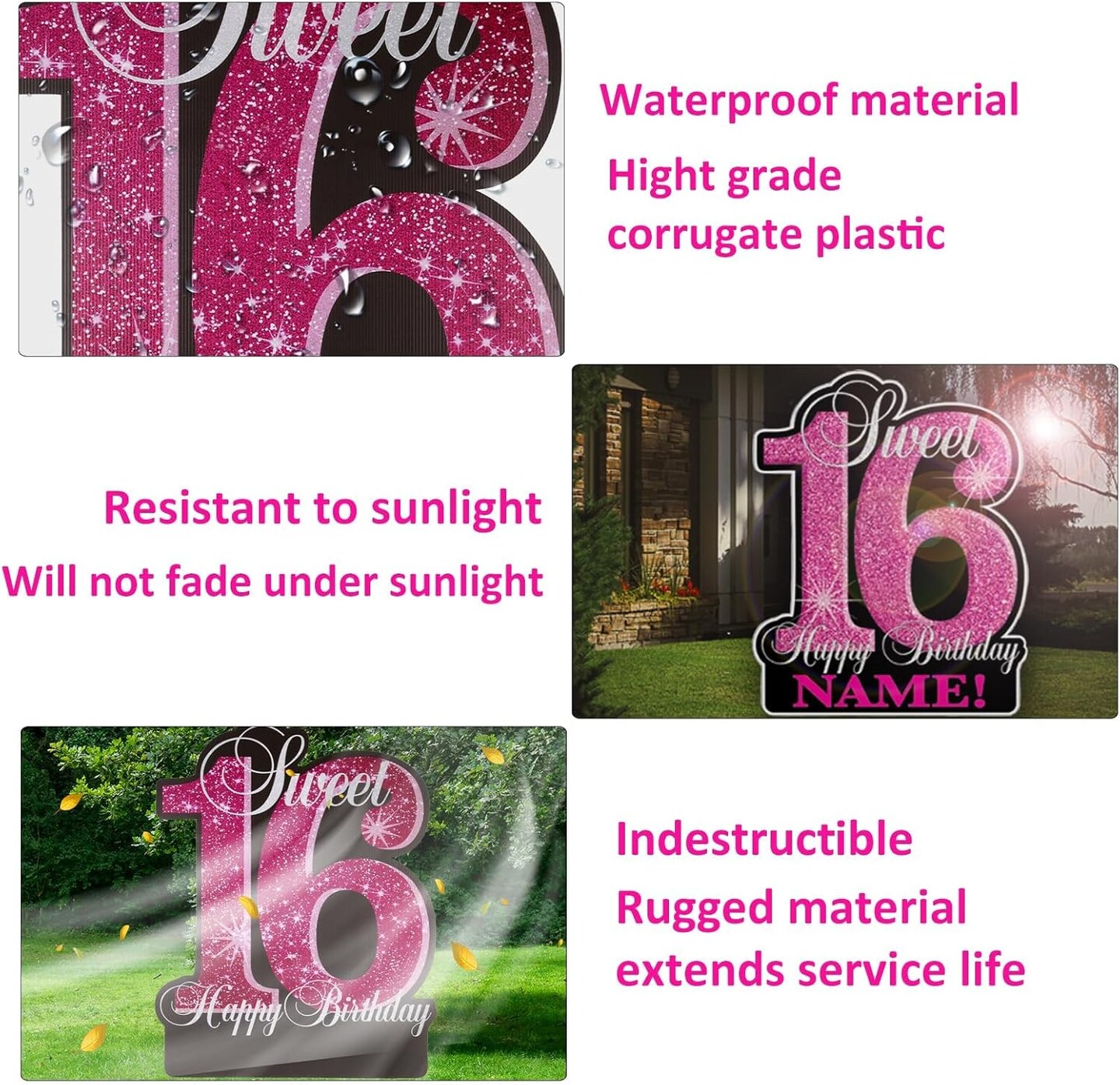 35 Inch Sweet 16 Birthday Large Yard Signs Personalized Name 16th Birthday Lawn Sign Glitter Waterproof Congrats Sign with Stakes for Happy Sweet 16 Party Outdoor