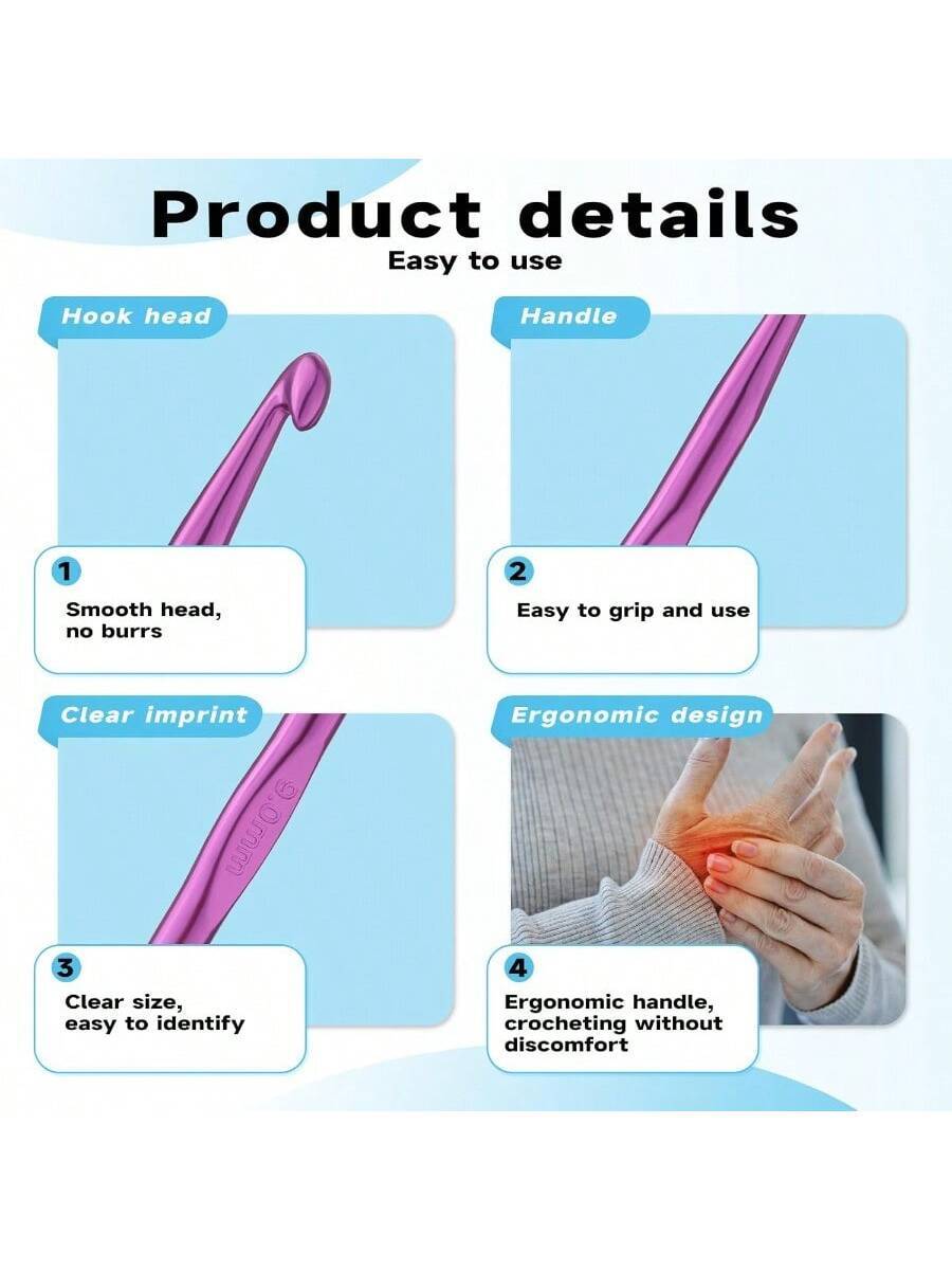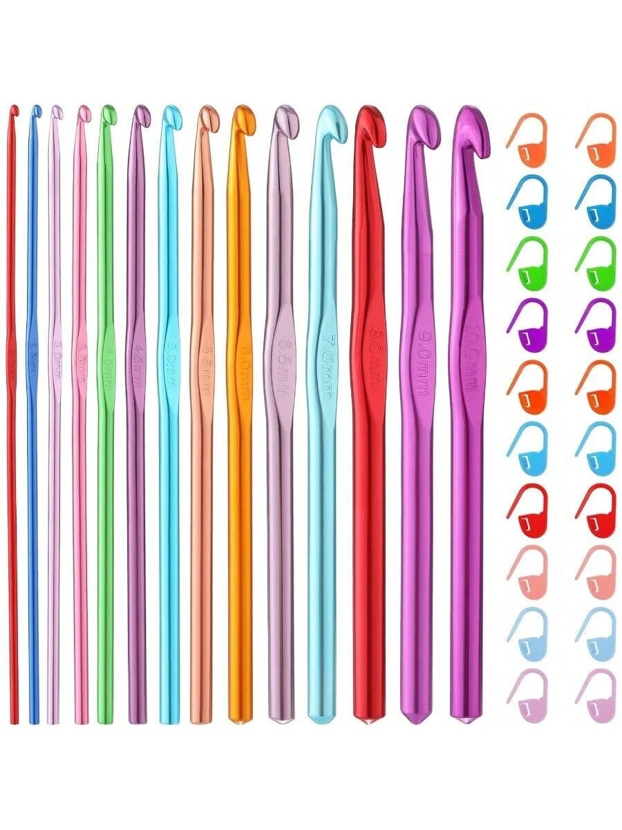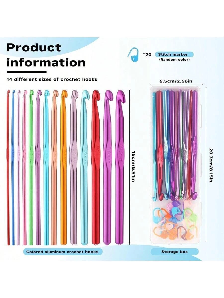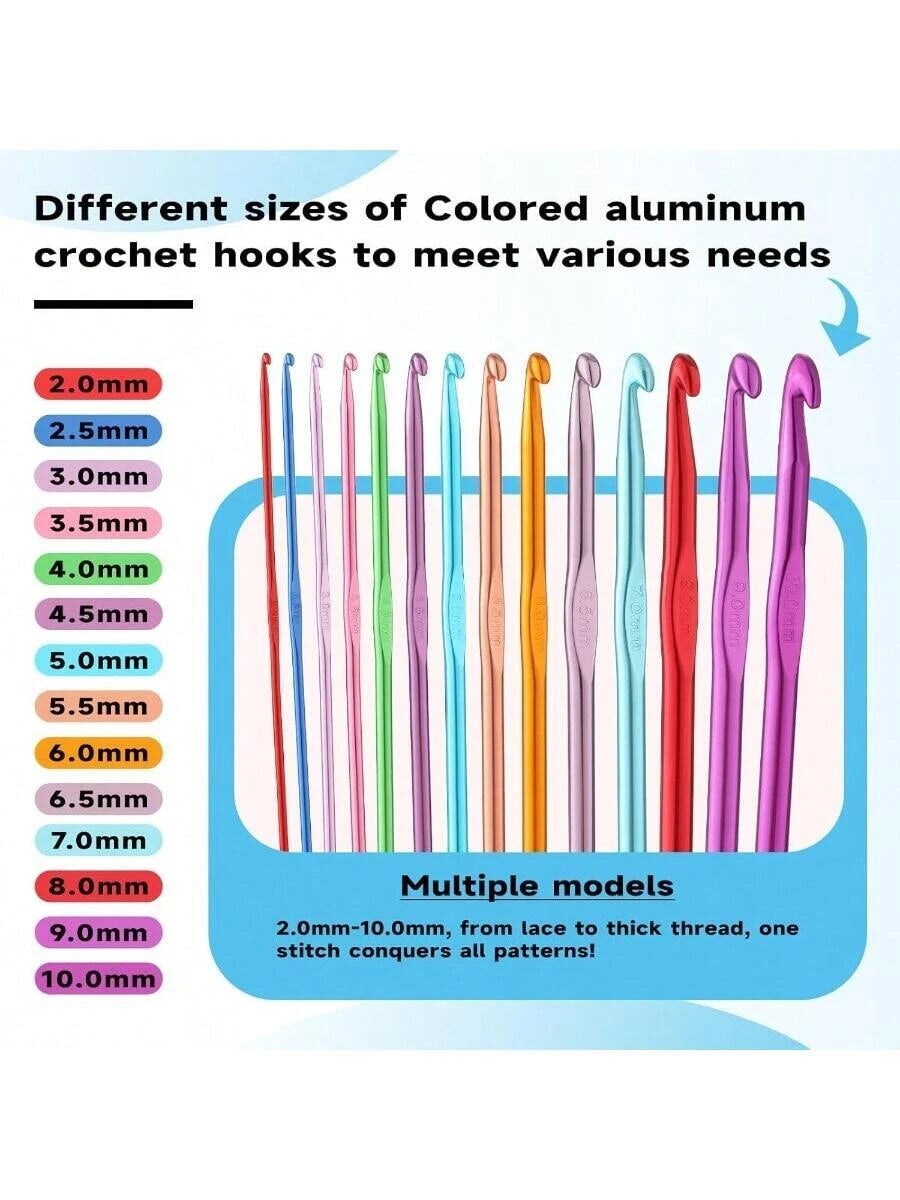 35 PCS Crochet Hooks Set, Colored Aluminum Ergonomic Handle Knitting Needles
