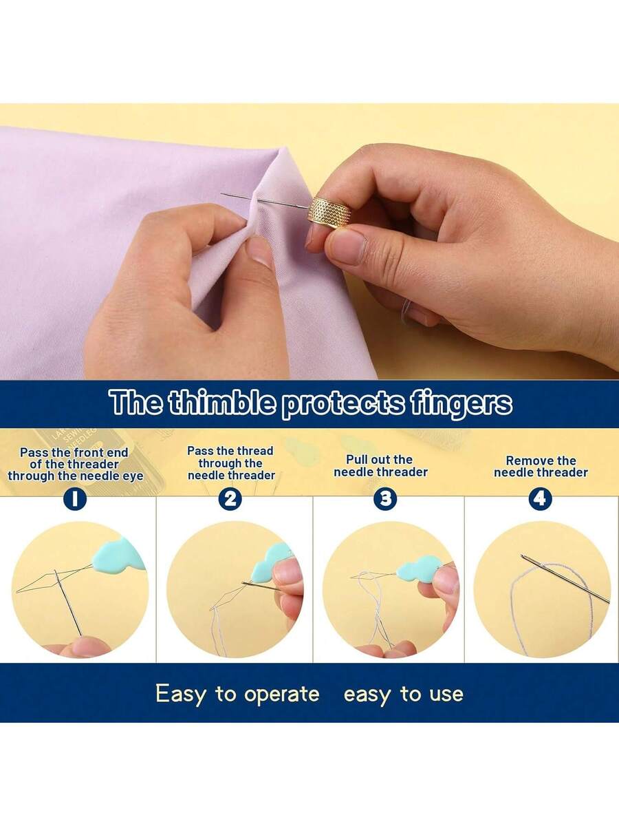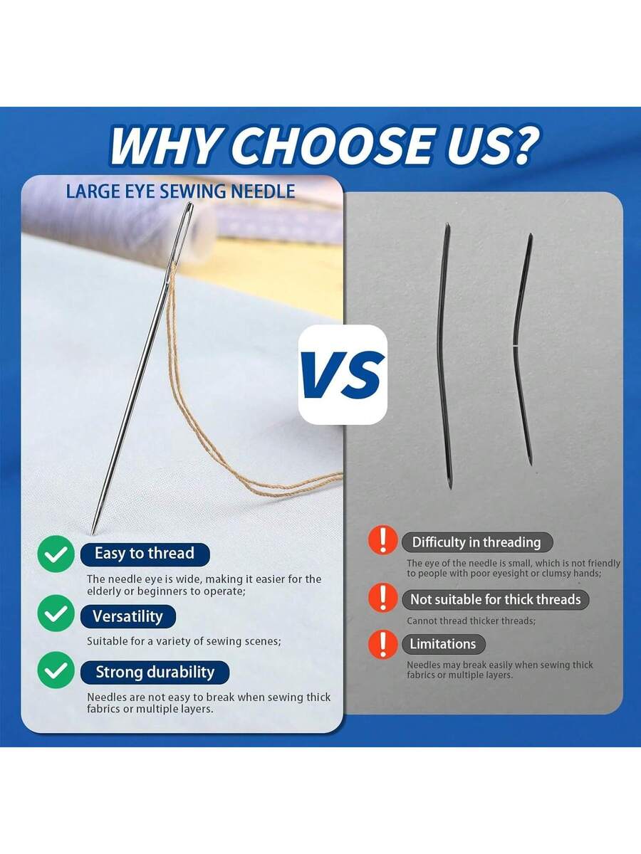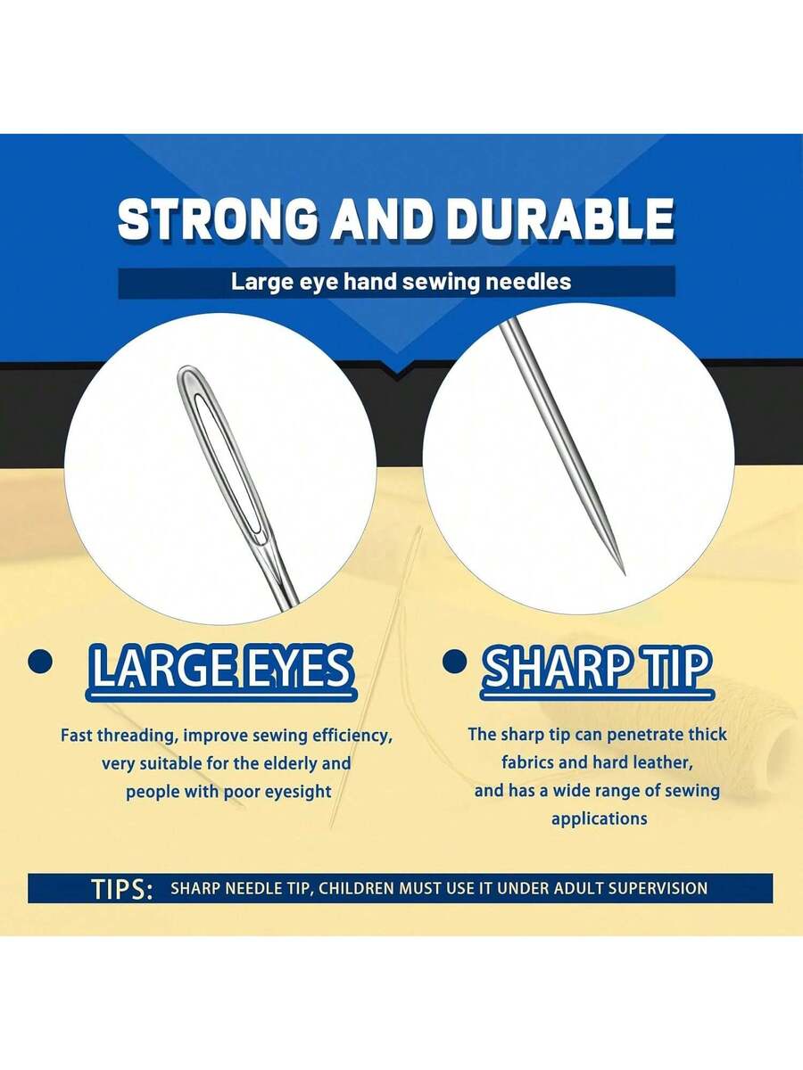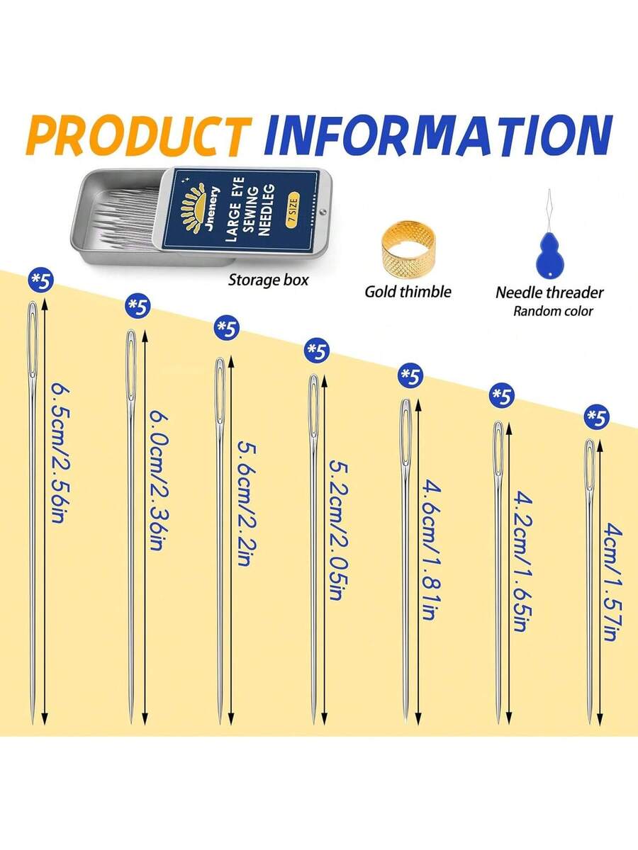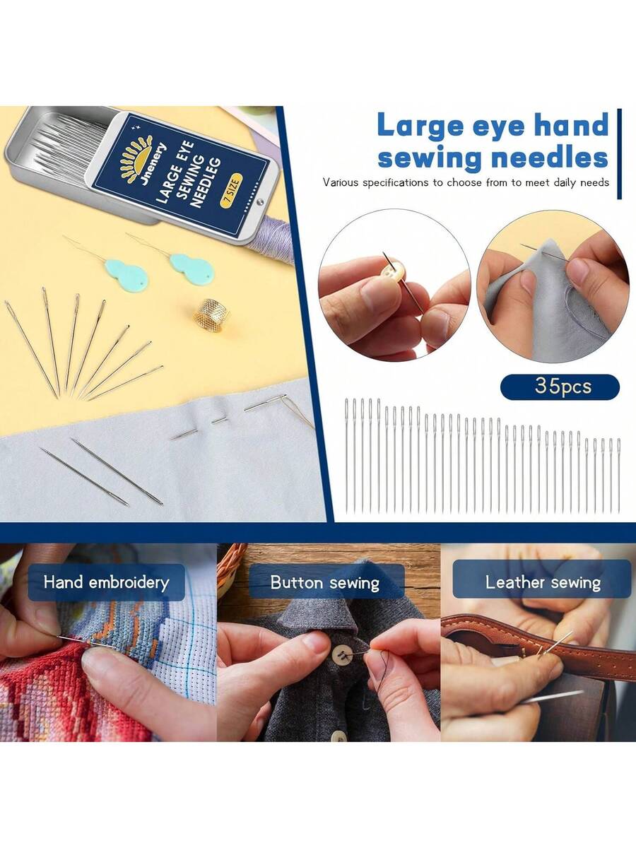 35 Pcs Large Eye Sewing Needles, 7 Size Sharp Needles for Handsewing with Threader and Thimble