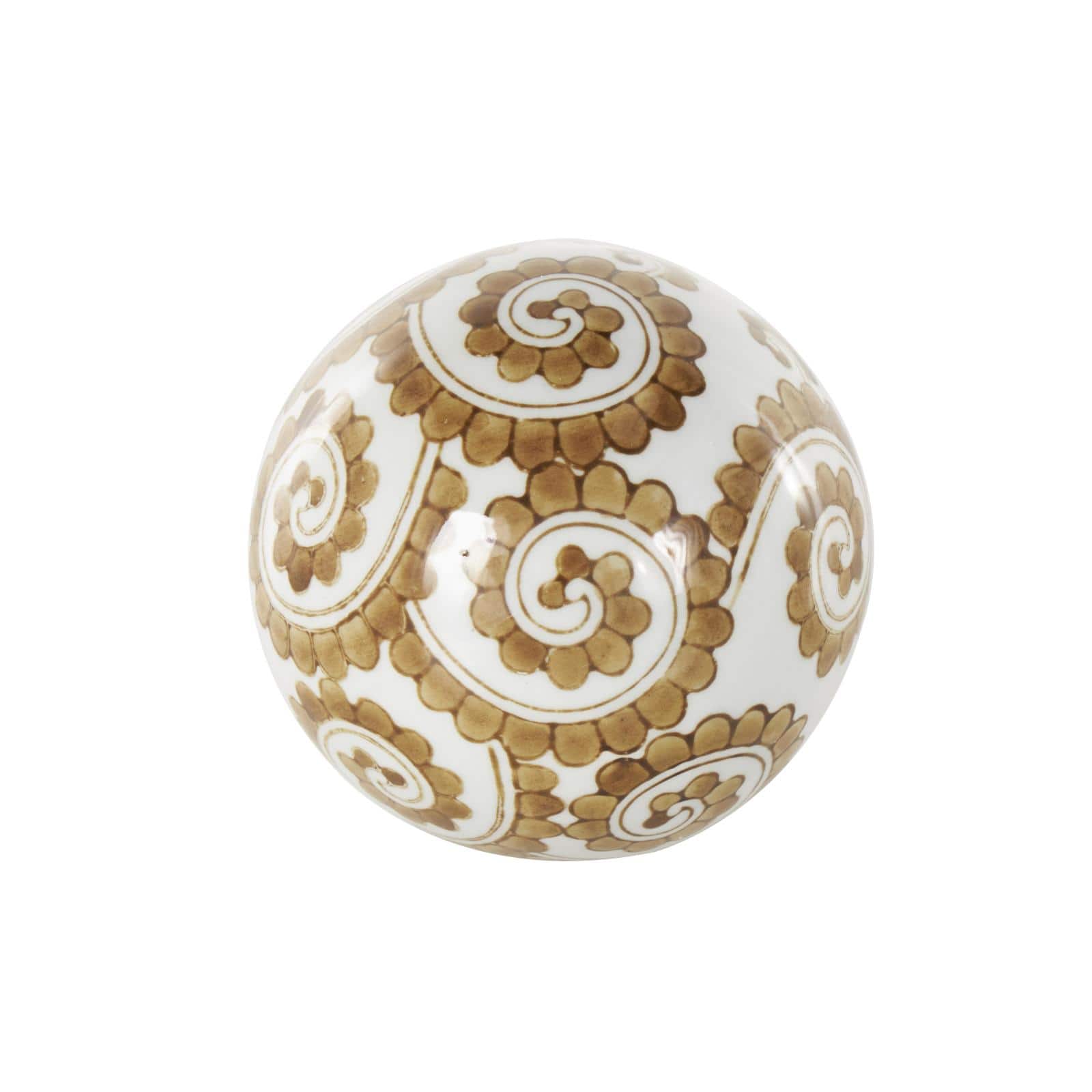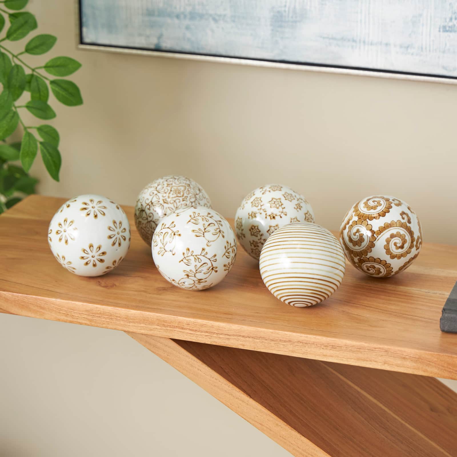 3.5" White & Brown Floral Ceramic Decorative Ball Orbs Set