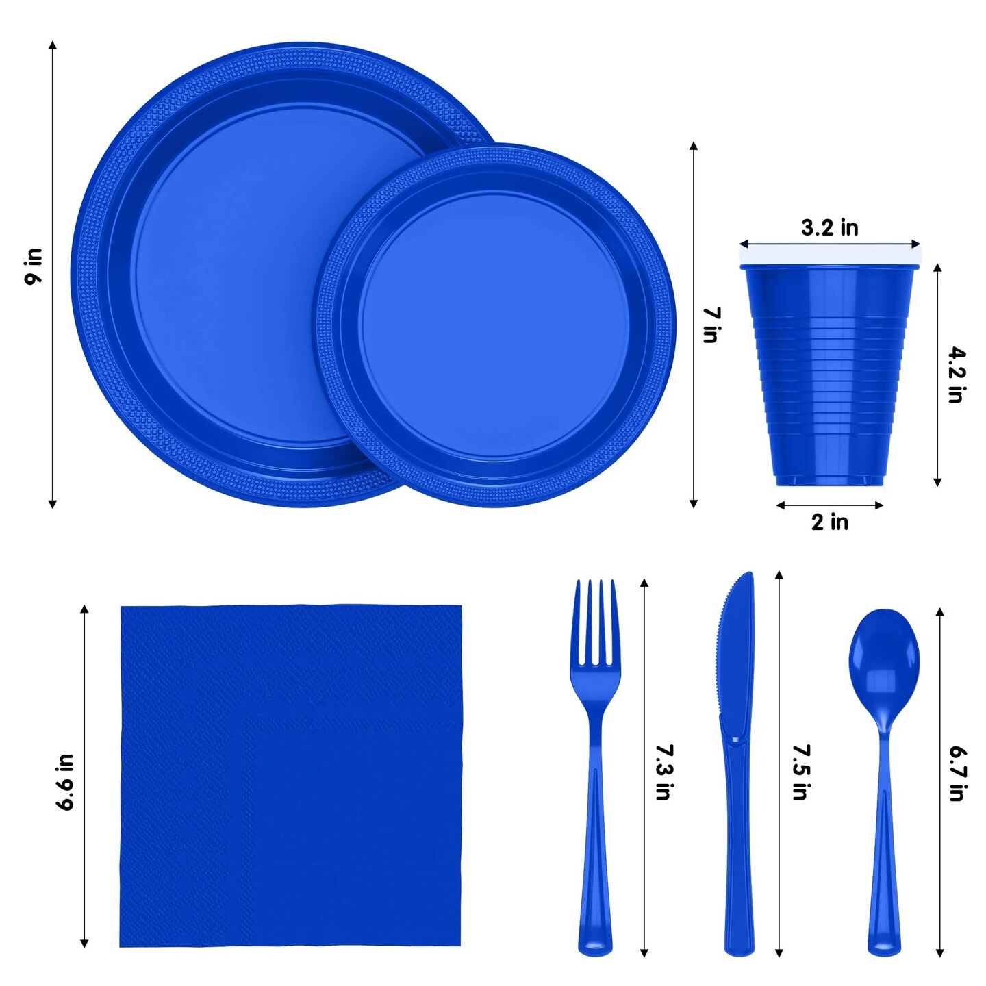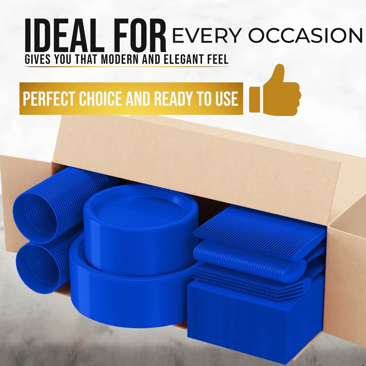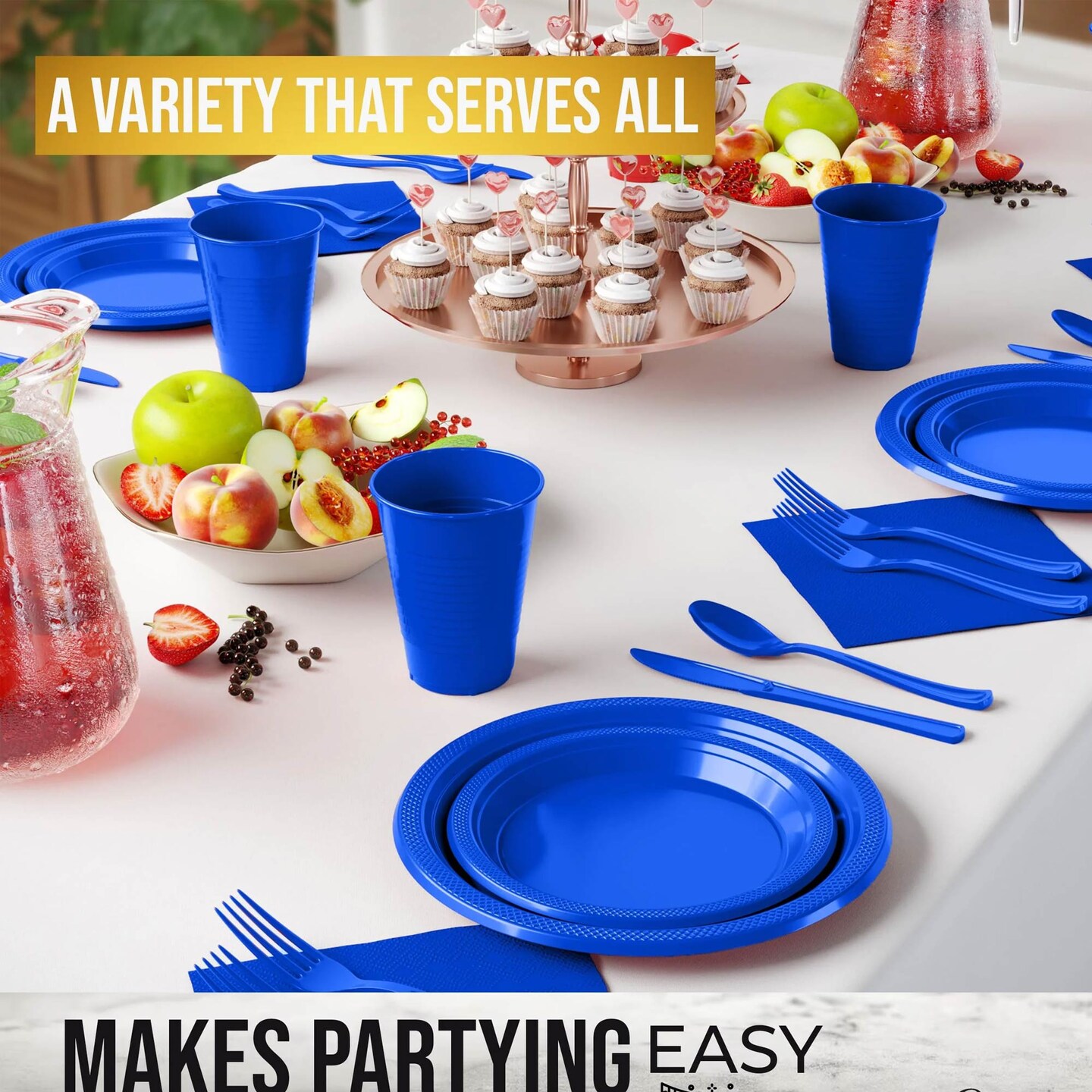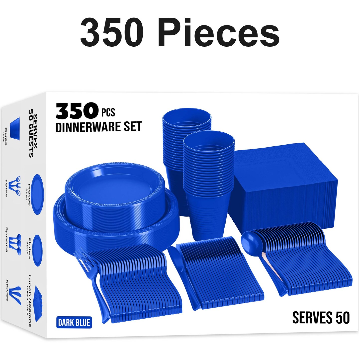 350 Count Dark Blue Disposable Plastic Tableware Set Bulk Combo Pack