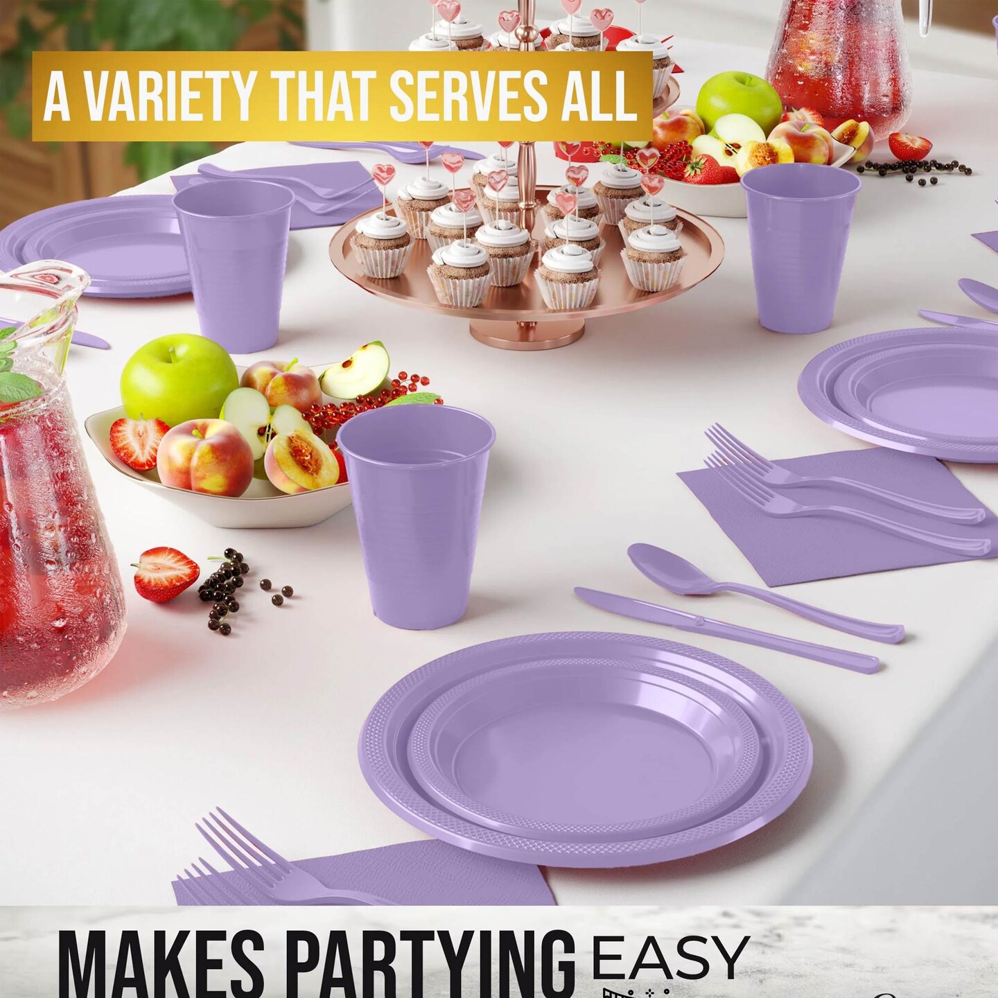 350 Count Lavender Disposable Plastic Tableware Set Party Supplies Combo Pack
