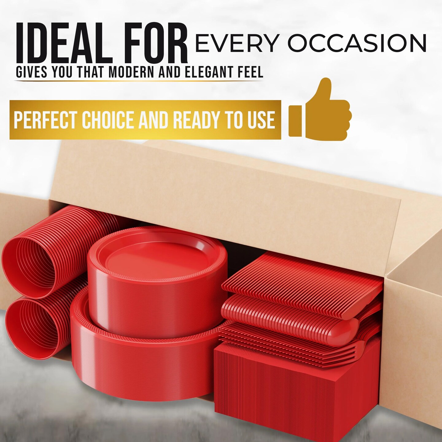 350 Count Red Disposable Party Plates Plastic Supplies Combo Pack 9 Inch