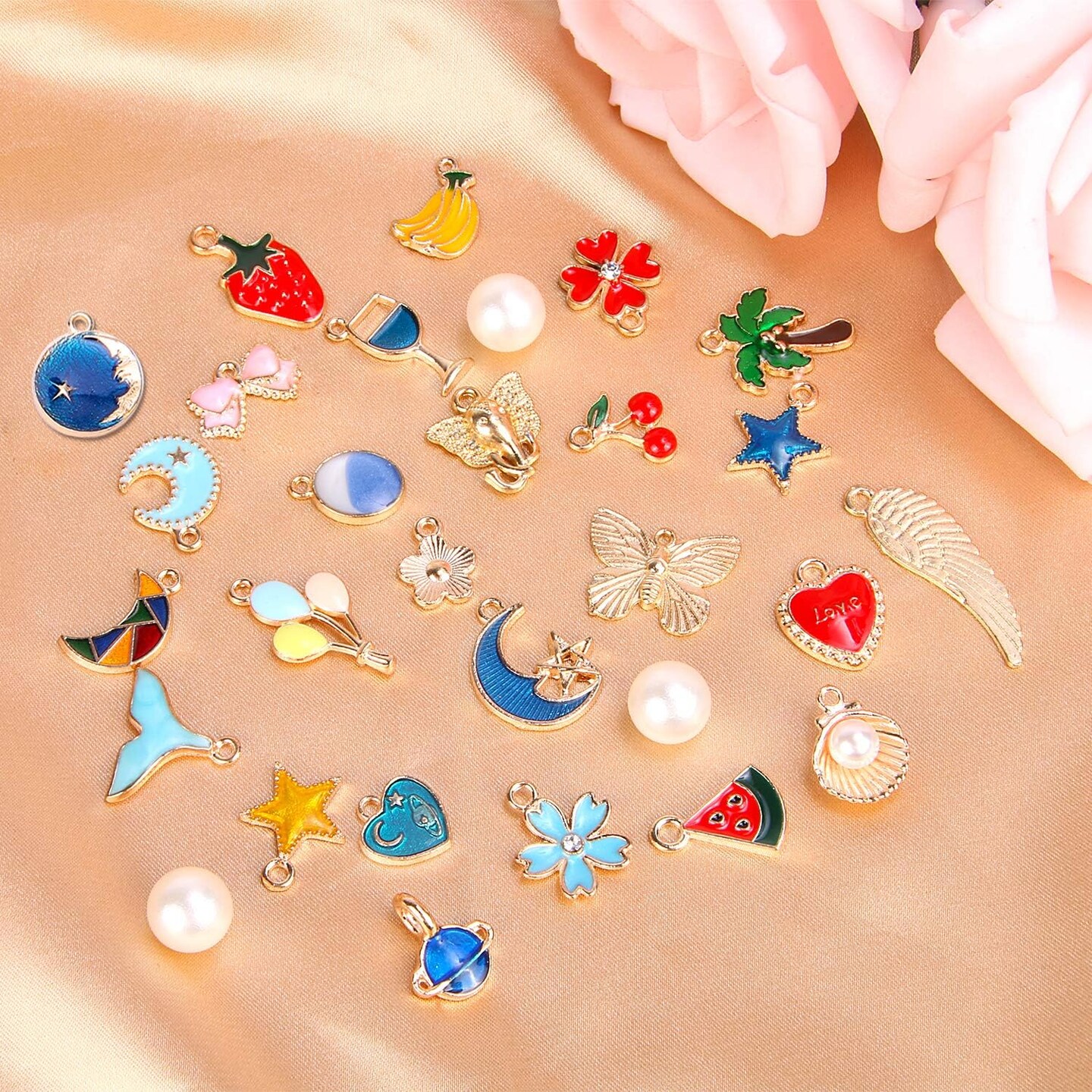 350Pcs Bracelet Charms Jewelry Making Charms Assorted Gold Plated Enamel Pendants for DIY Necklace Bracelet Earring Craft Supplies