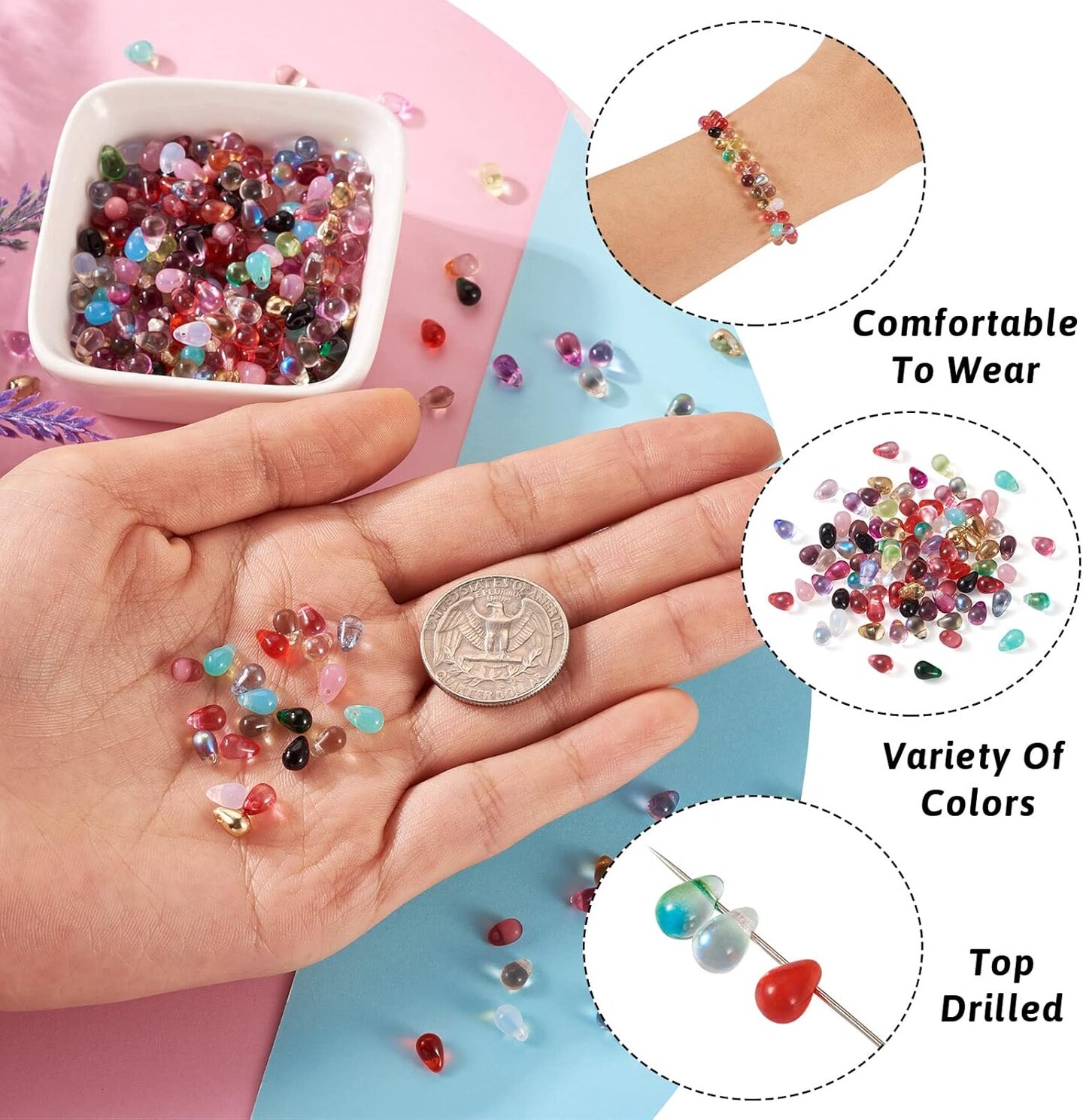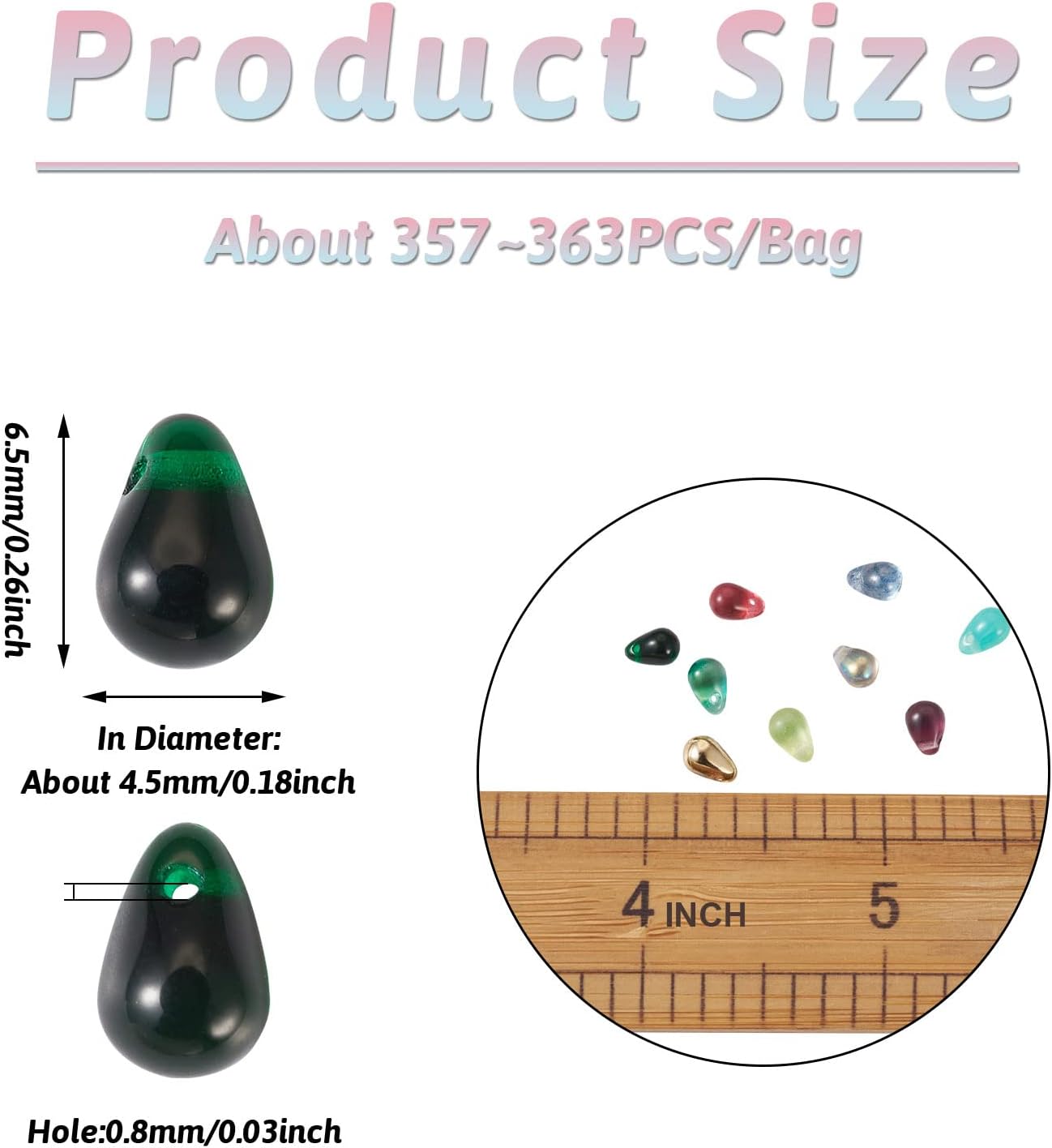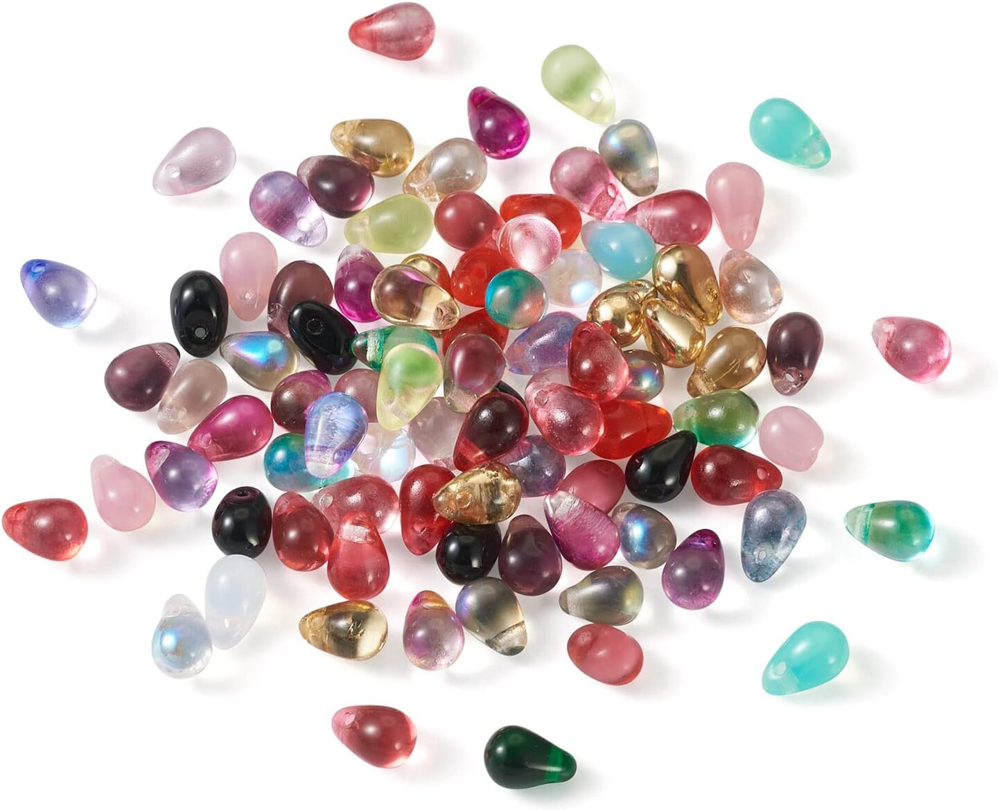350Pcs Teardrop Czech Glass Beads Mixed Colors, 6.5x4.5mm