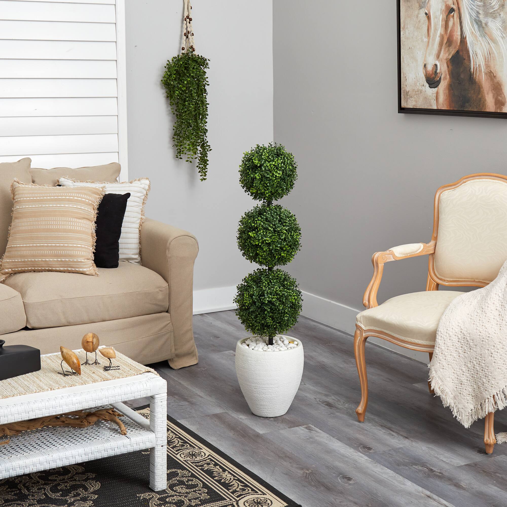 3.5ft. Boxwood Triple Ball Topiary Artificial Tree in White Planter