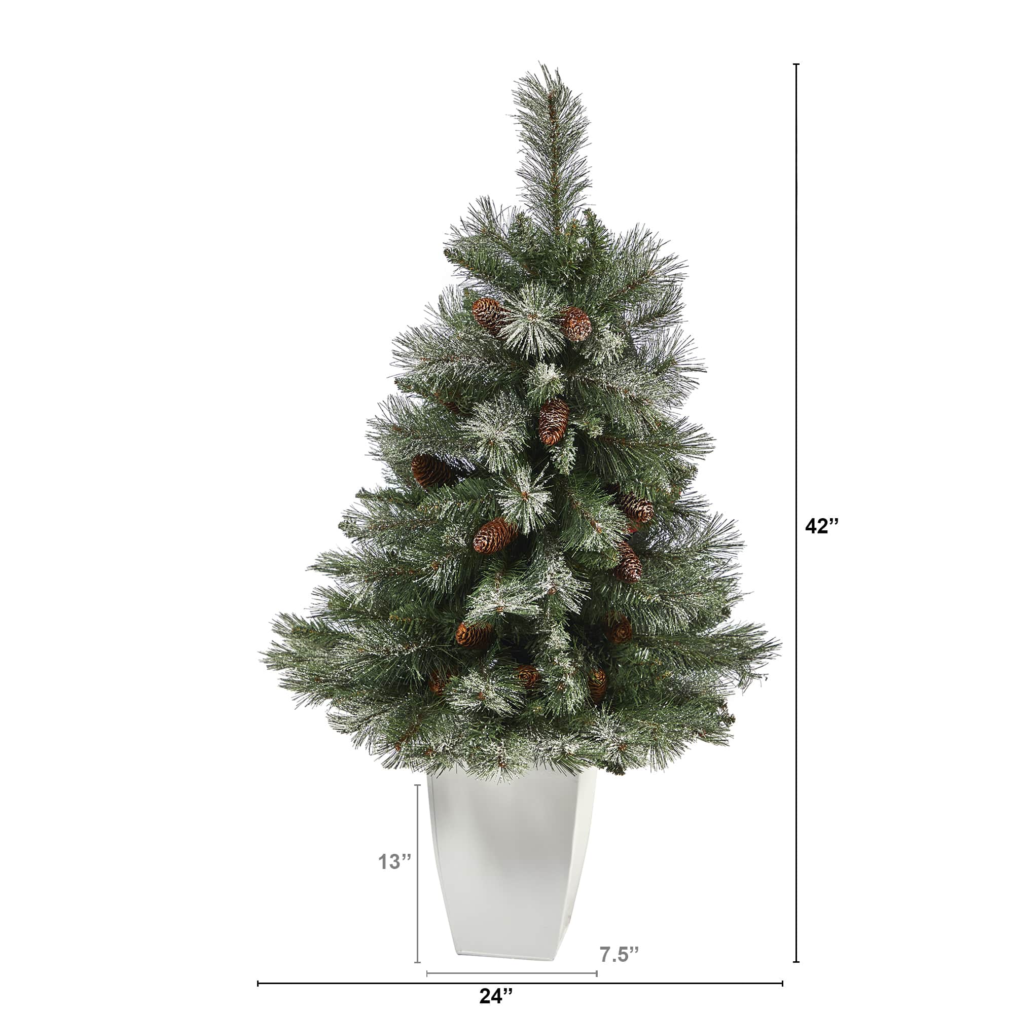 3.5ft. Unlit Snowed French Alps Mountain Pine Artificial Christmas Tree with Pinecones in Metal Planter