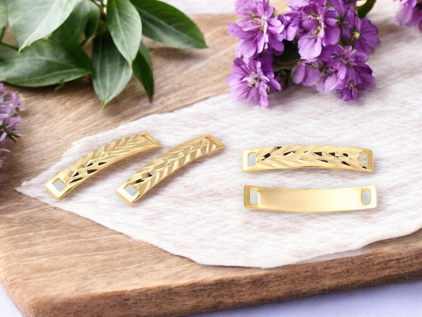 35x6mm 24k Gold Plated Curved Rectangle Link Connectors - 2pc