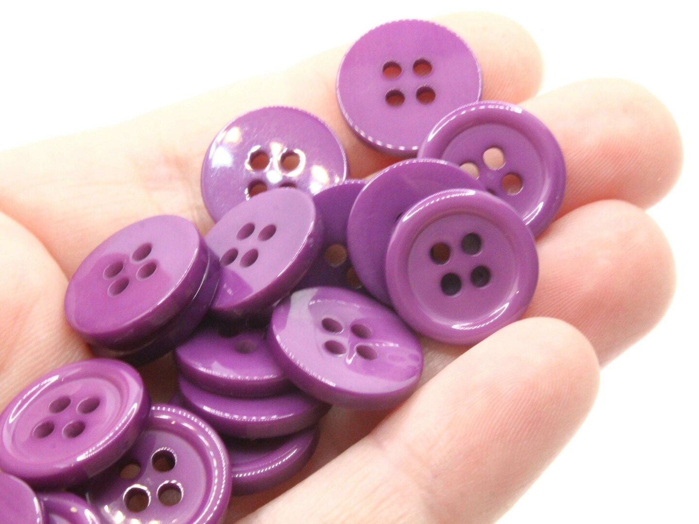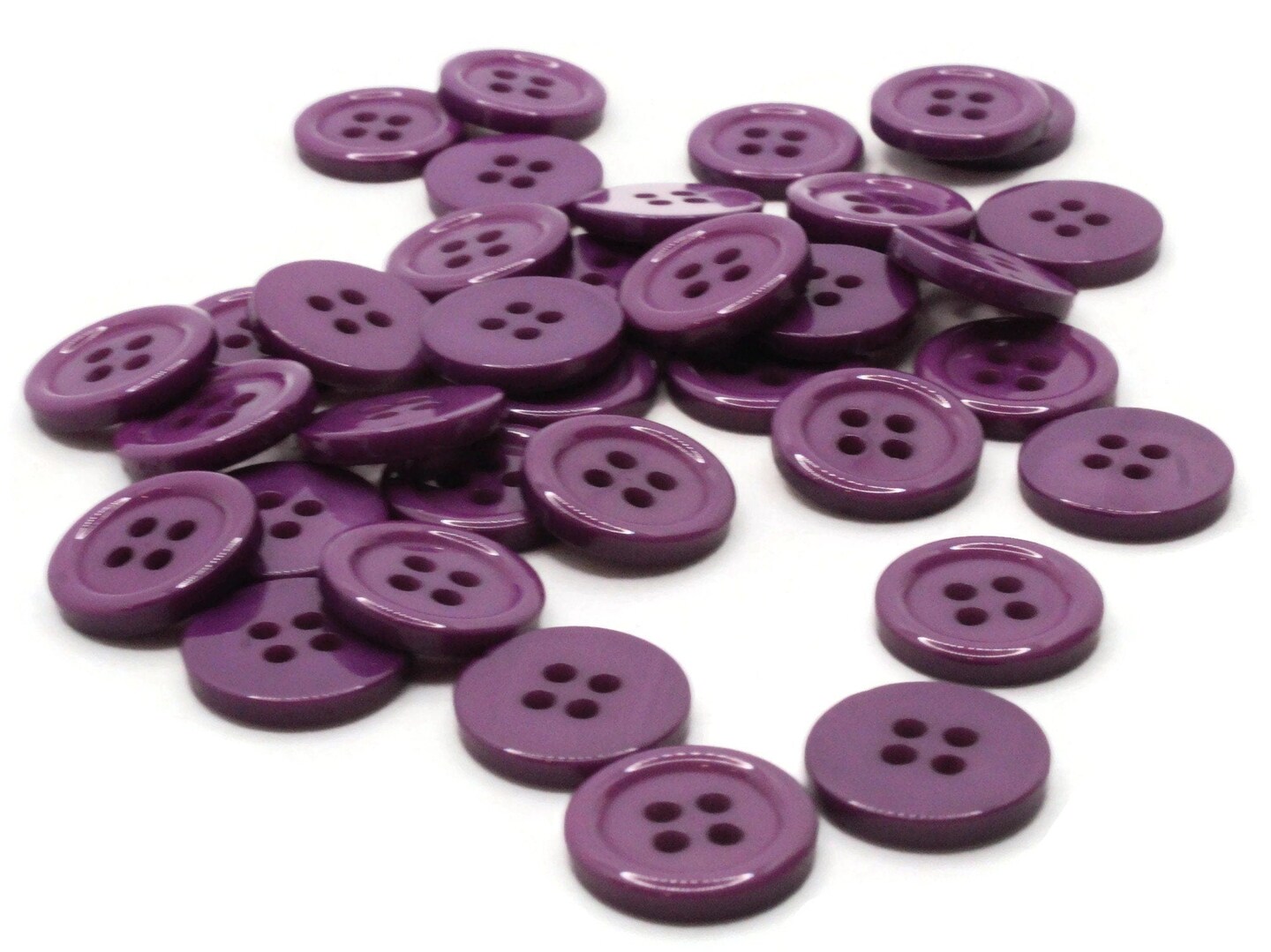 36 15mm Purple Flat Round Plastic Four Hole Buttons