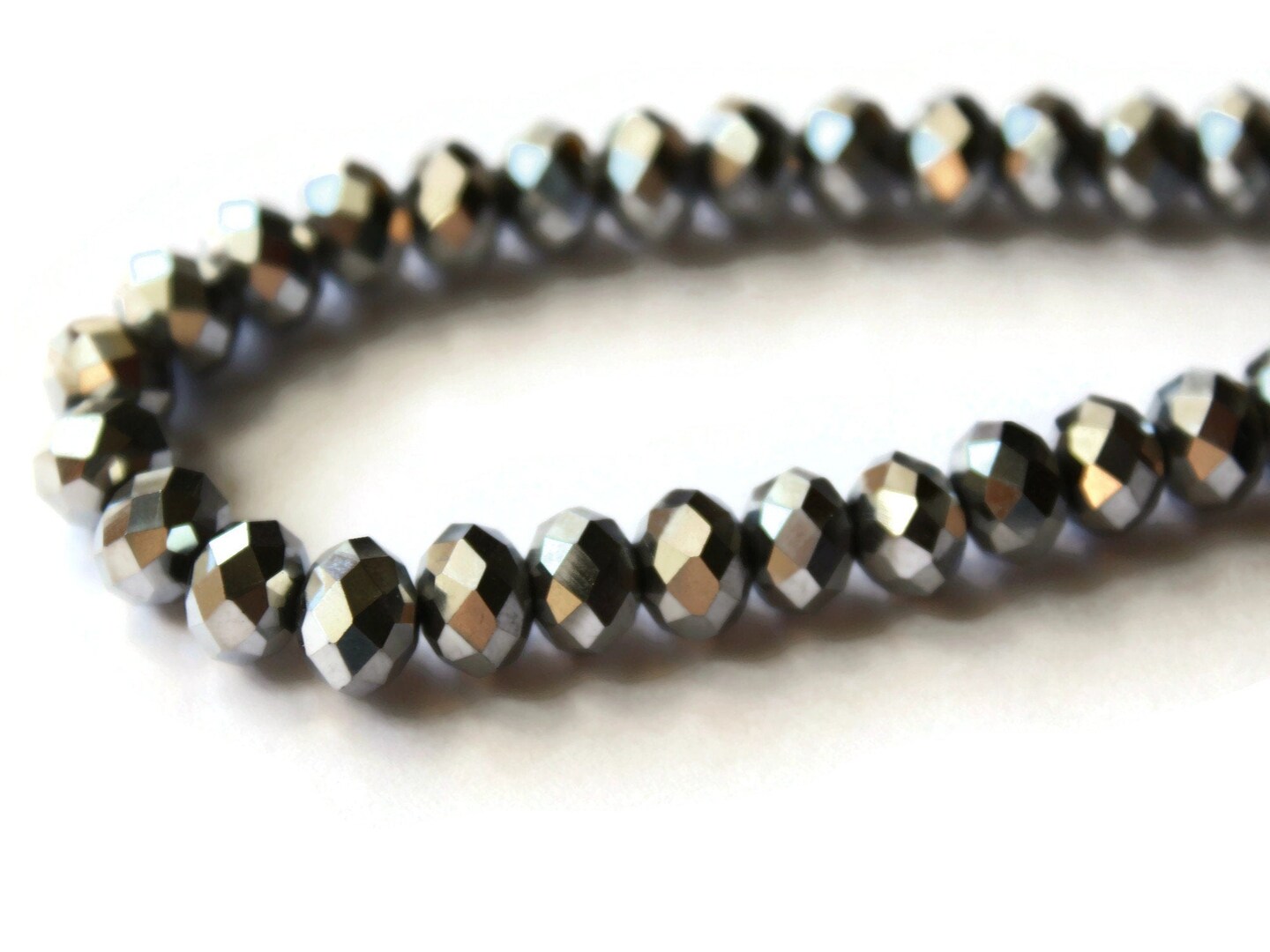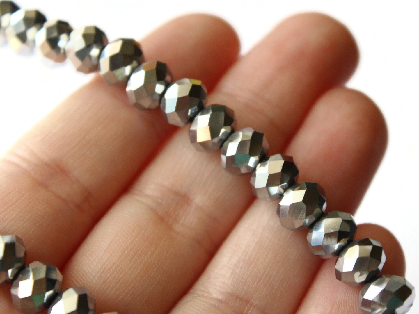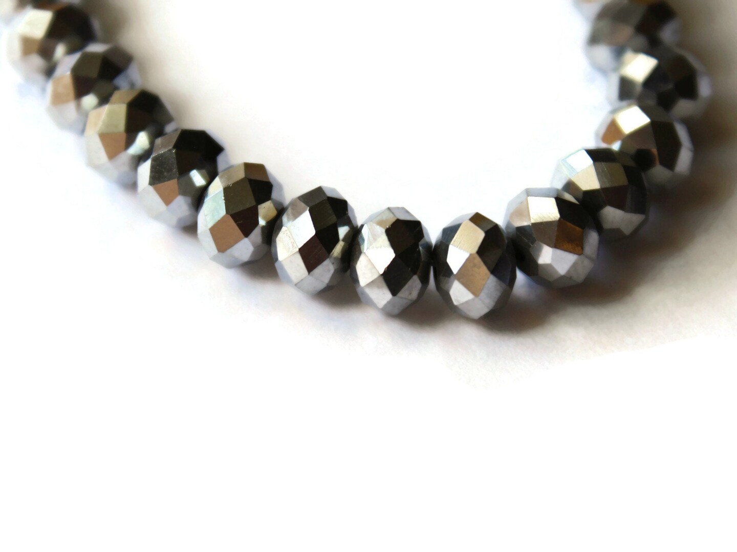 36 6mm x 8mm Silver Crystal Faceted Rondelle Beads