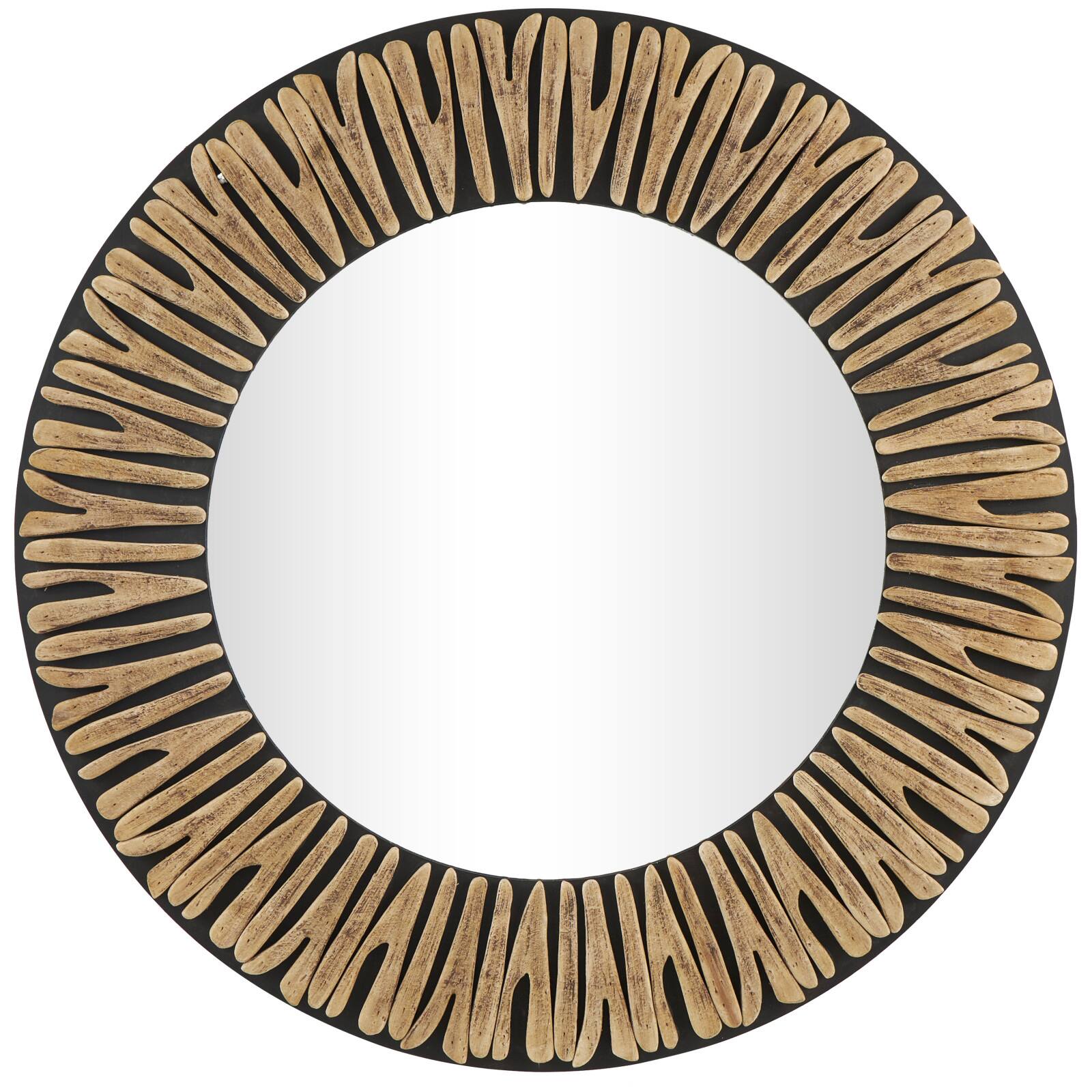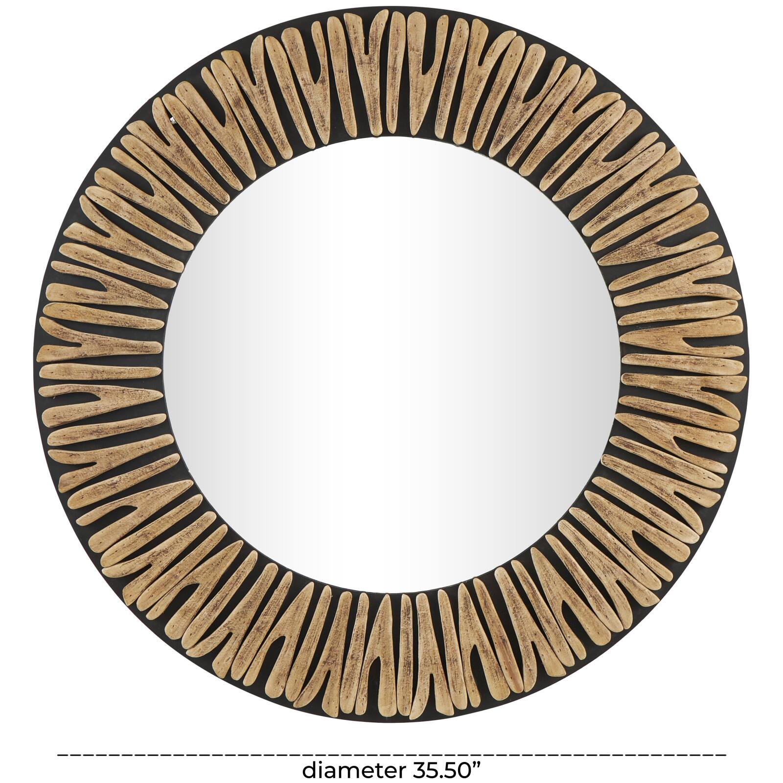 36" Black & Golden Handmade Abstract Carved Wooden Wall Mirror