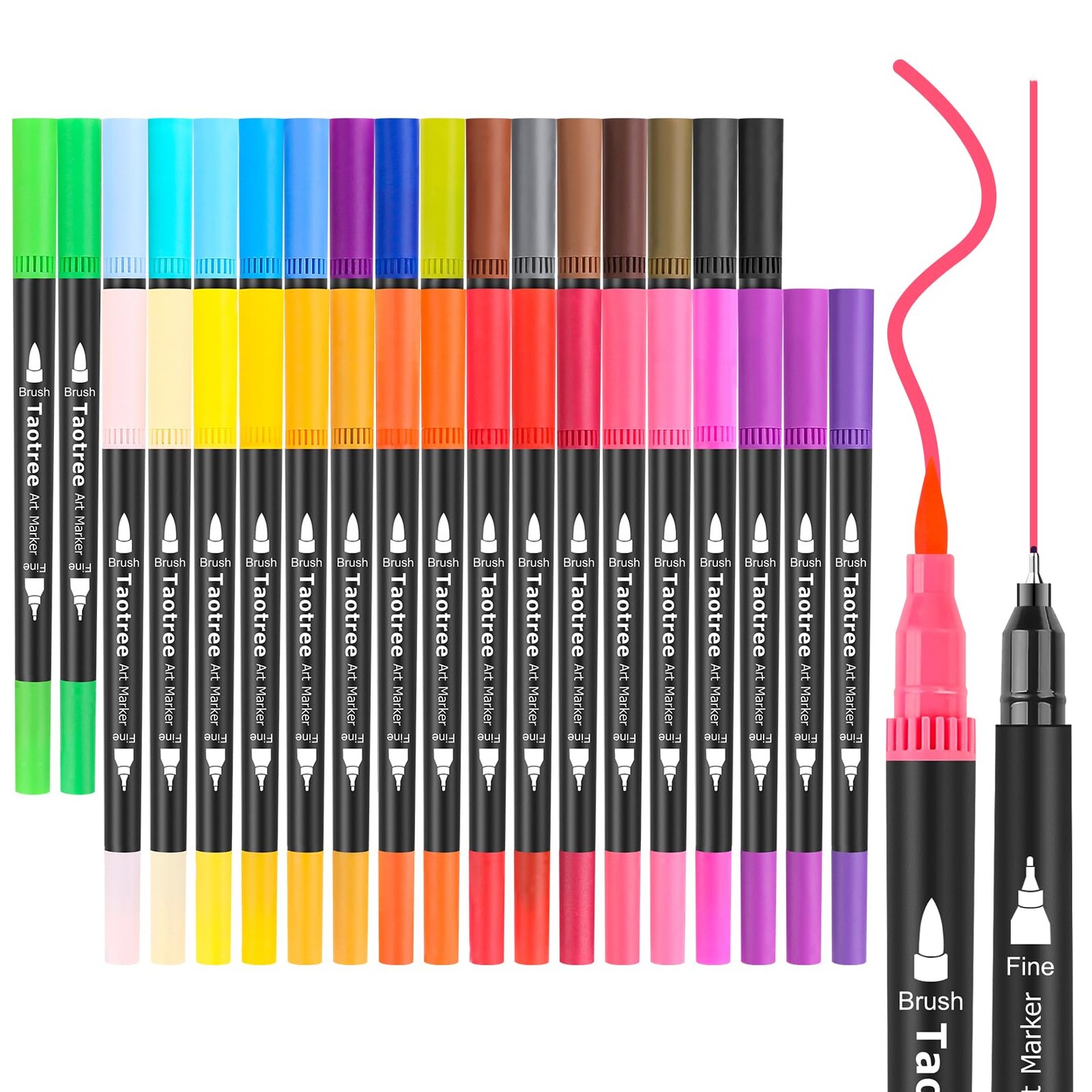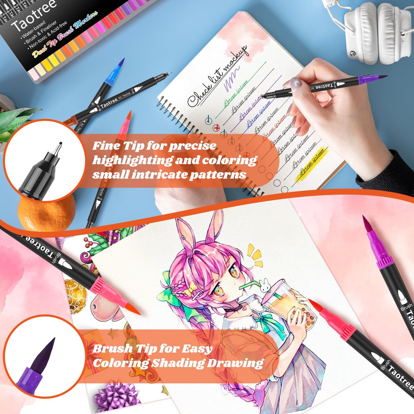 36 Colors Dual Tip Art Markers Pens for Kids Adult Coloring Books, Artist Fine & Brush Tip Coloring Markers Drawing Pen for Journaling Note Taking Lettering Calligraphy Craft Art Supplies Set