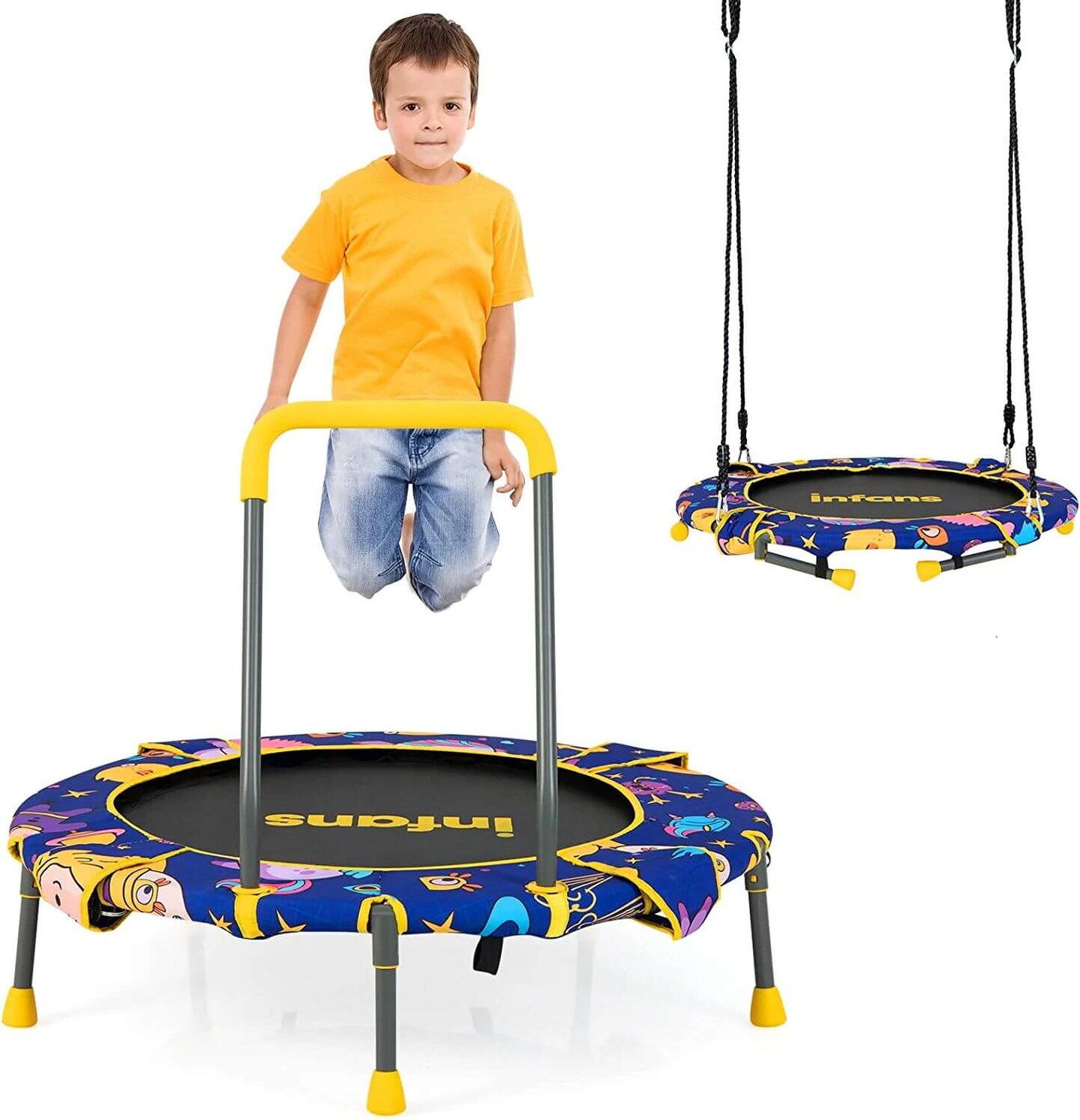 36 Inch Foldable Mini Trampoline for Kids with Adjustable Straps