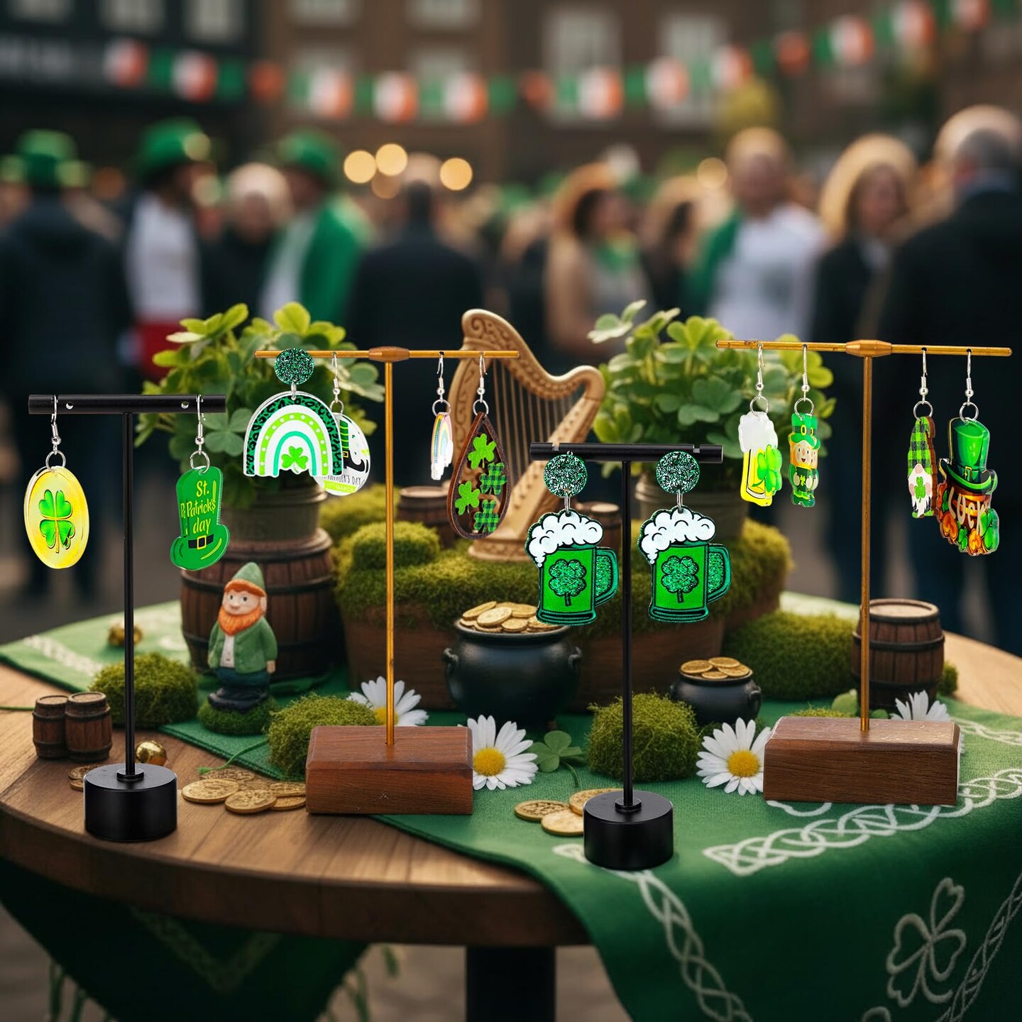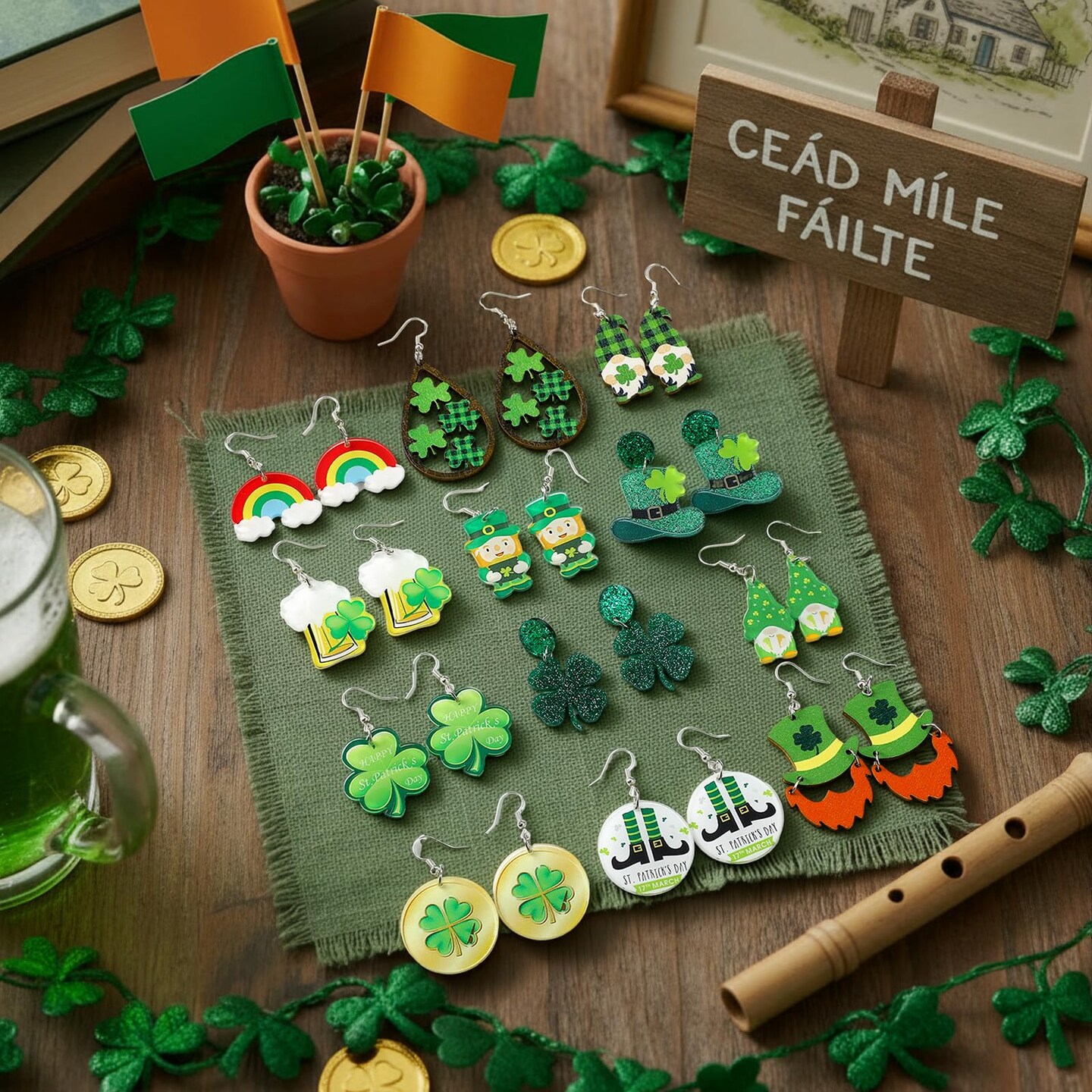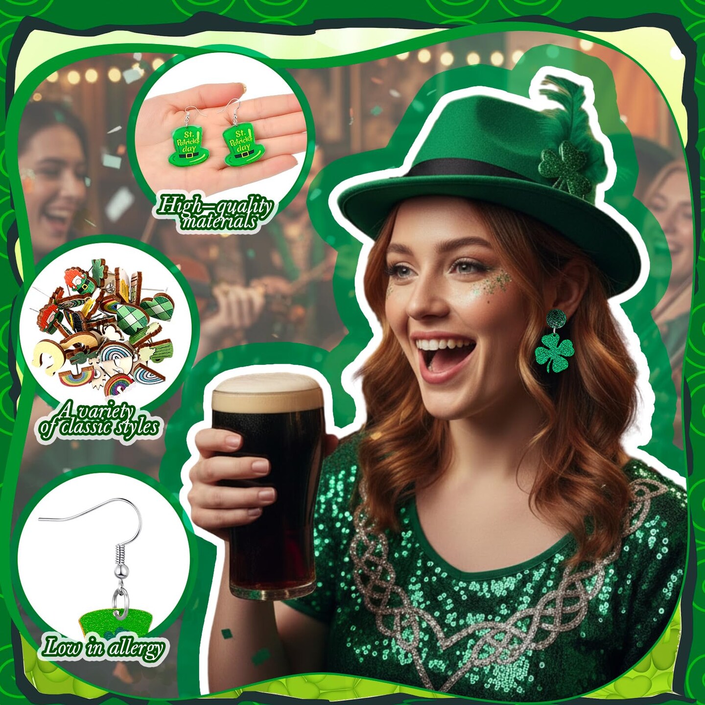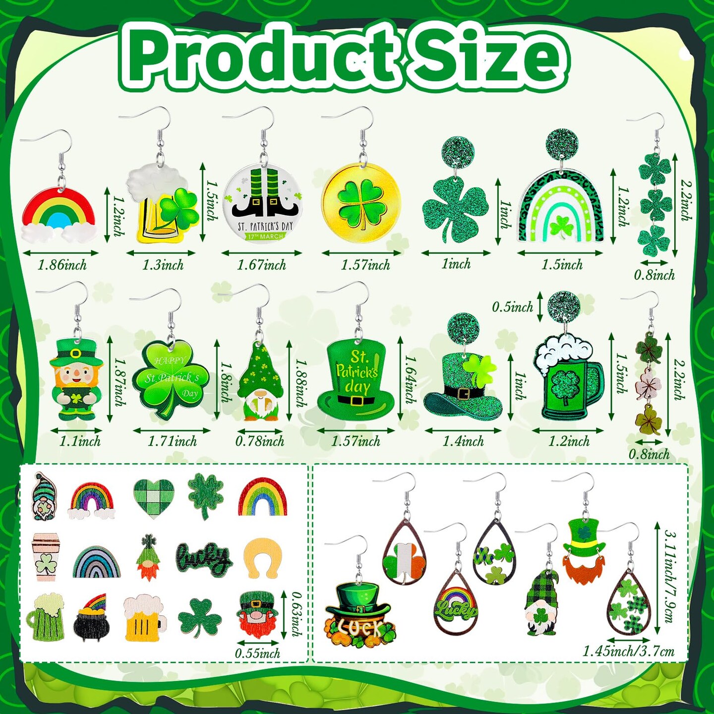 36 Pairs Wooden St. Patrick's Day Earrings Irish Shamrock Green Dangle Earrings Accessories for Women Saint Patrick Jewelry Gifts