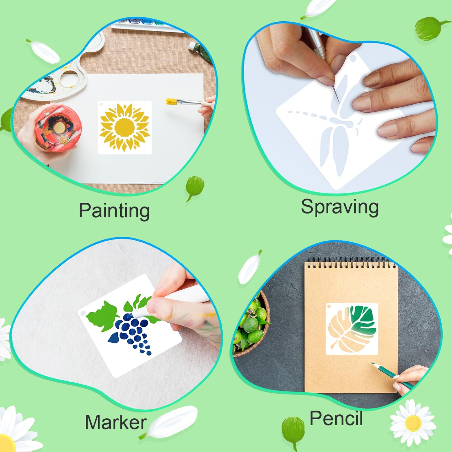 36 Pcs 3 Inch Flower Stencils, Small Stencils for Crafts, Reusable Paint Template for Wall, Butterfly & Bird Stencil for Painting Home Decor Art Projects