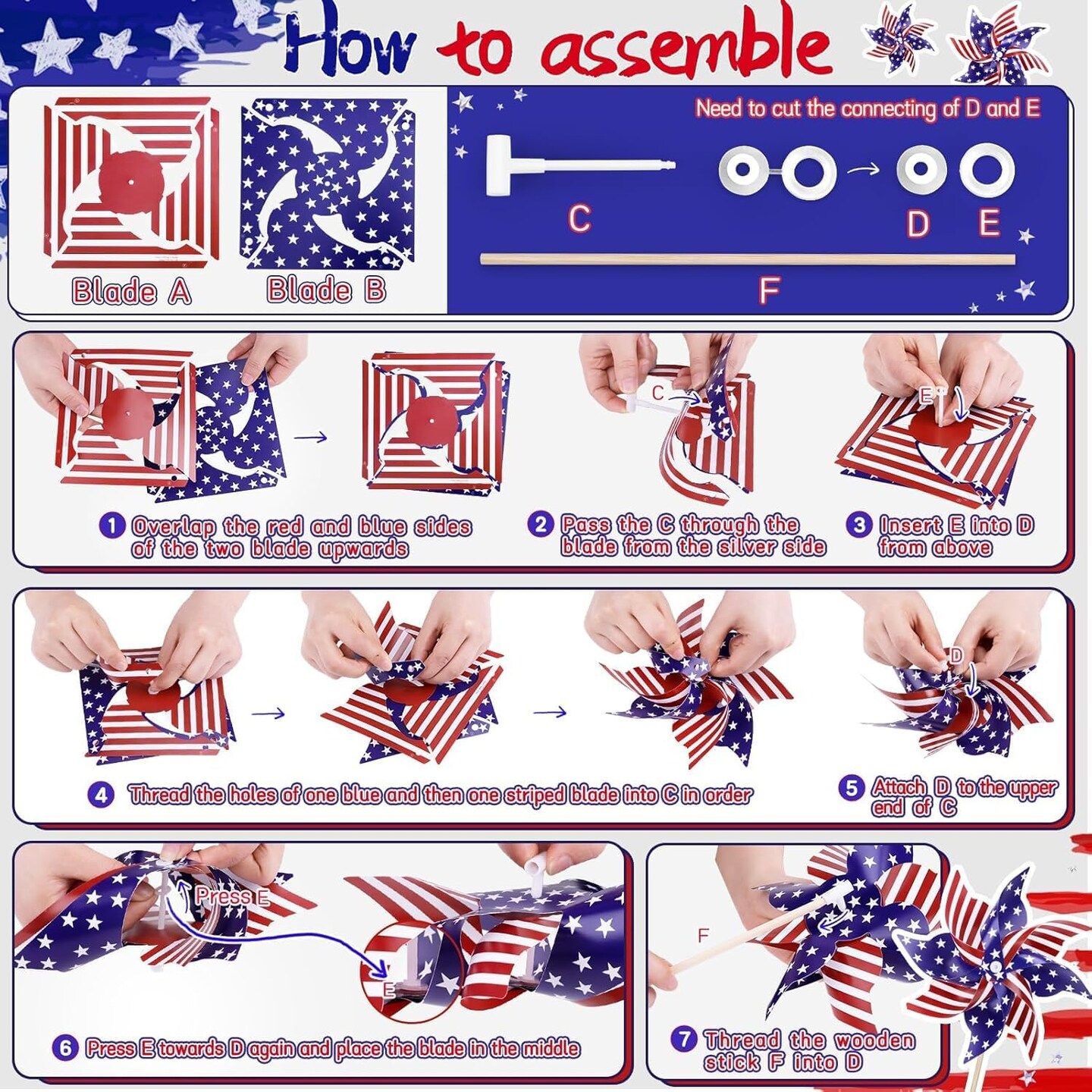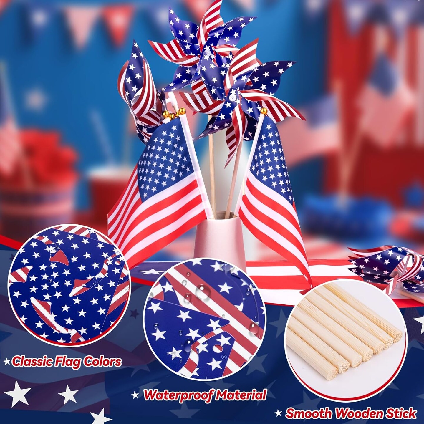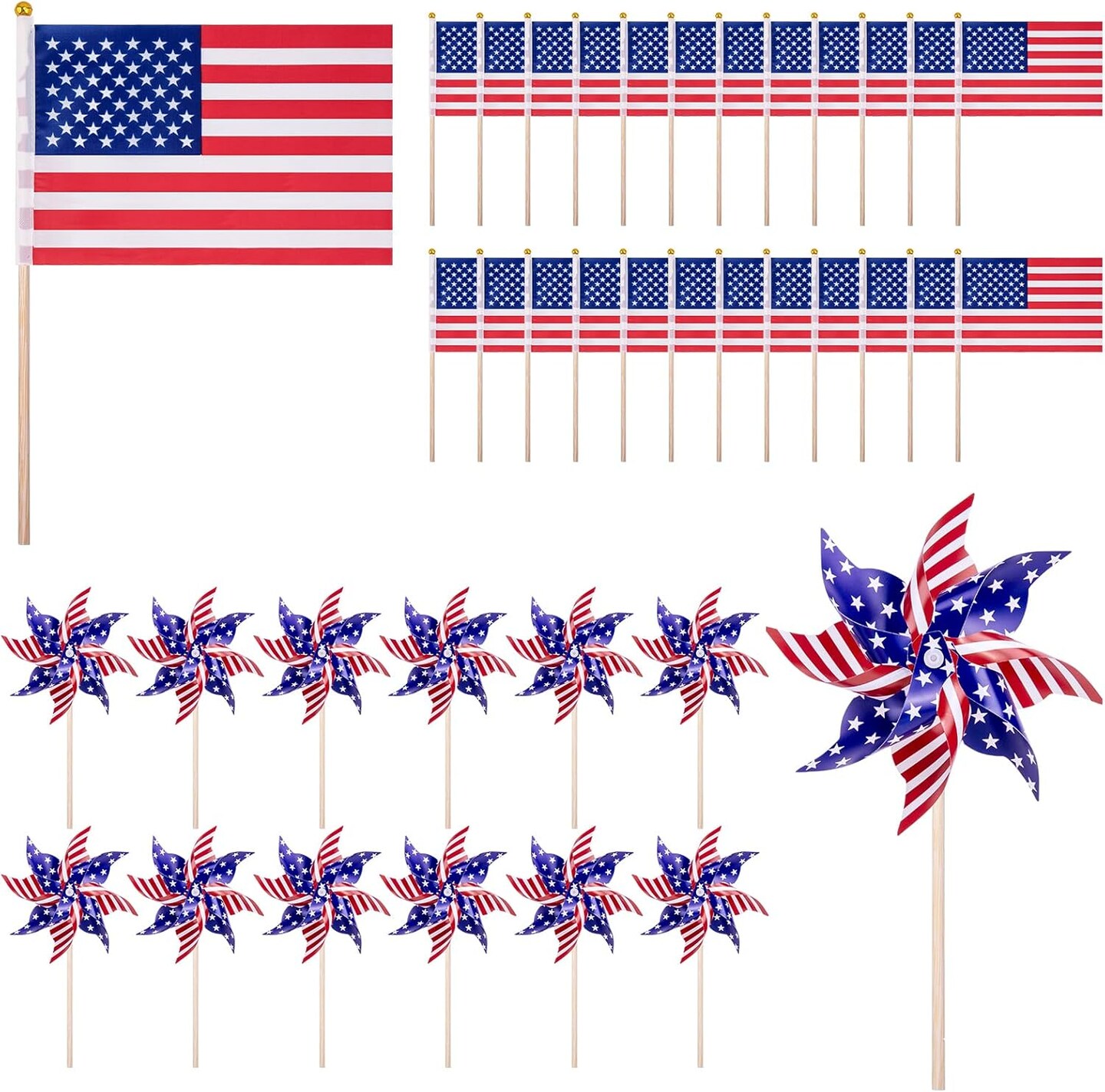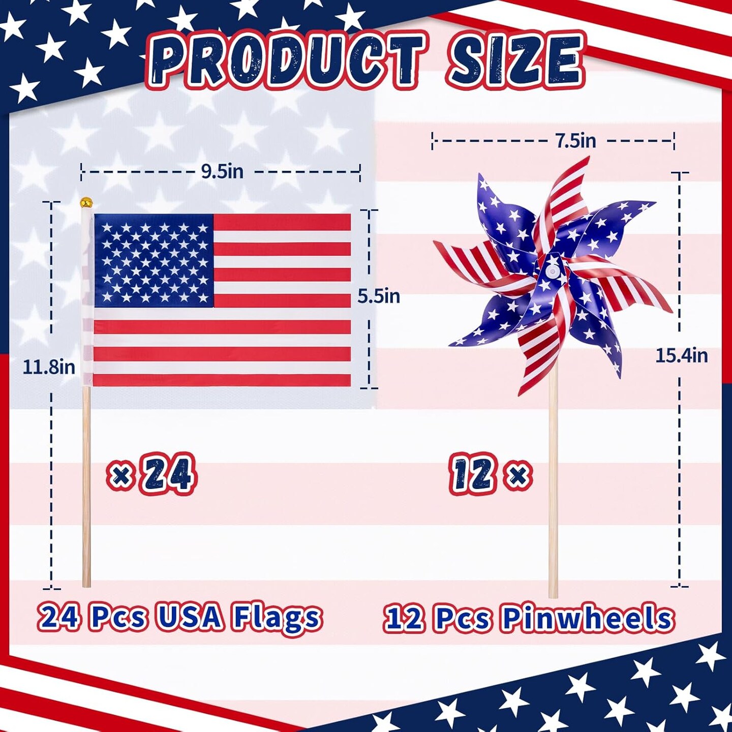 36 Pcs 4th of July USA Flags and Pinwheels Decorations