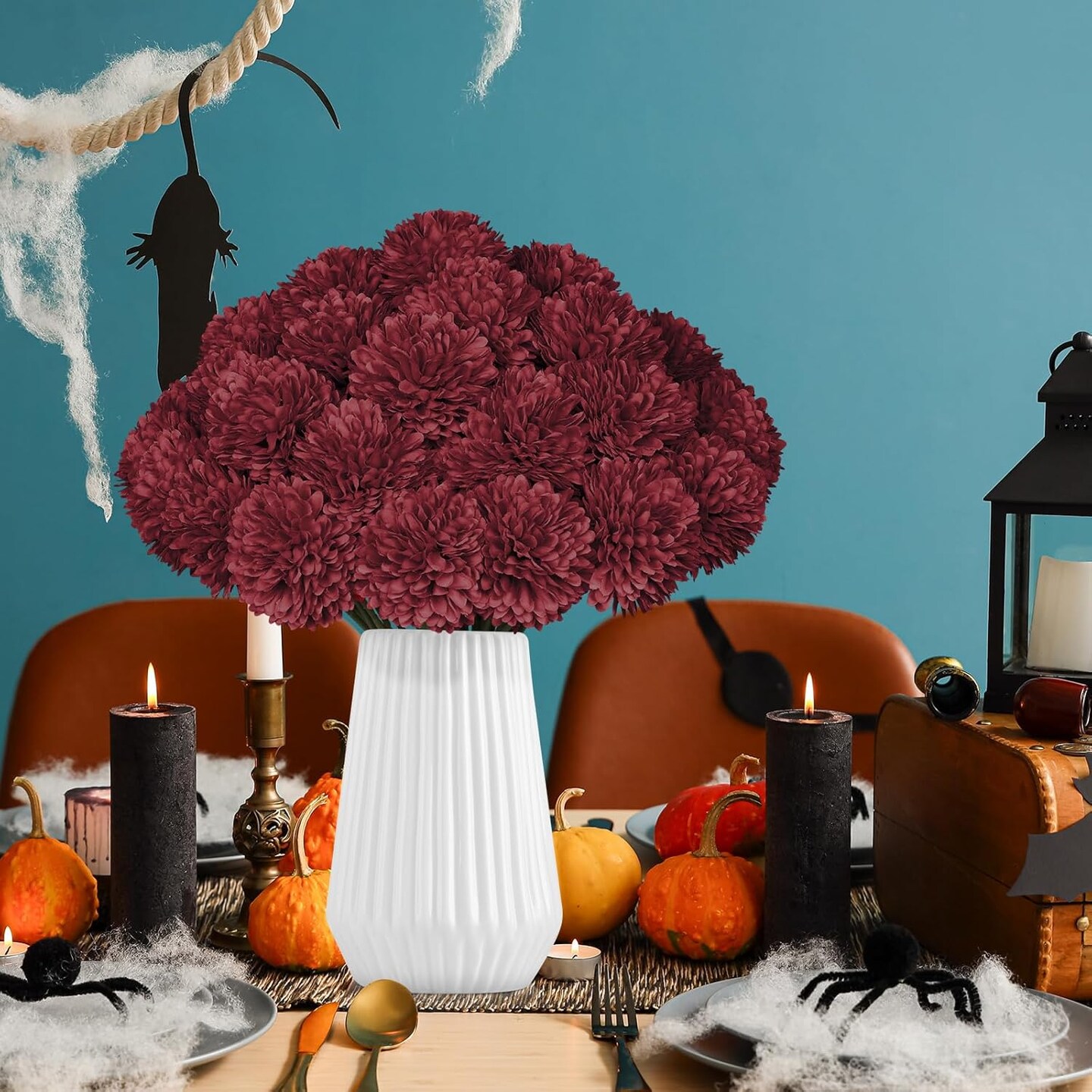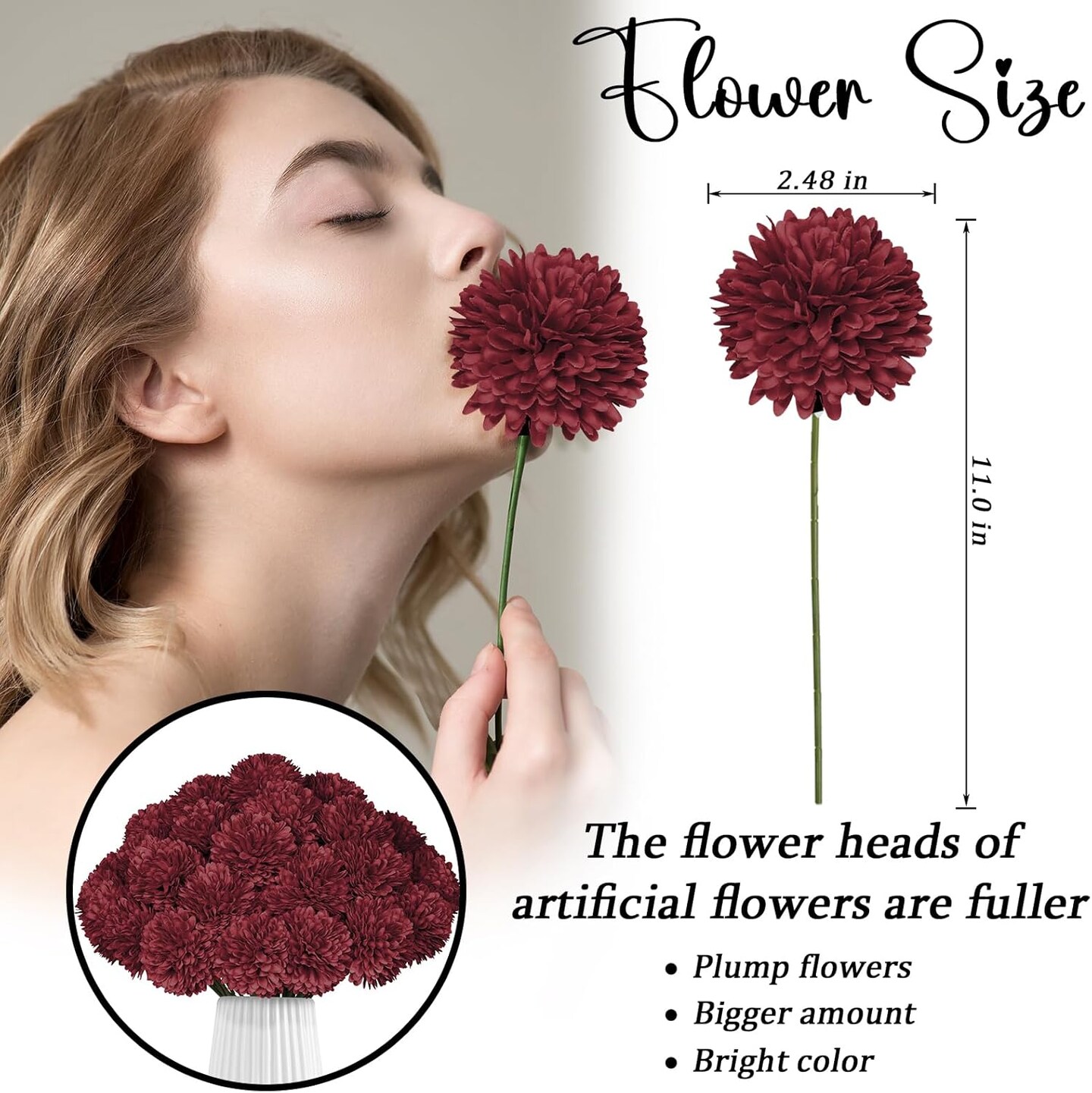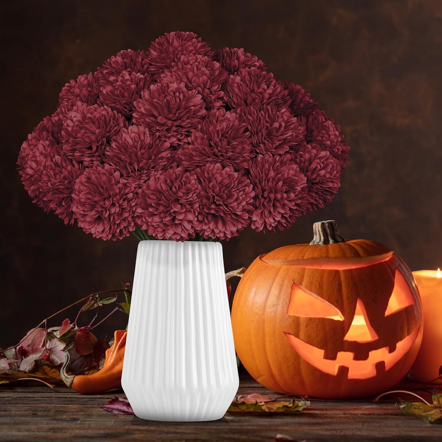 36 Pcs Burgundy Artificial Chrysanthemums Flowers