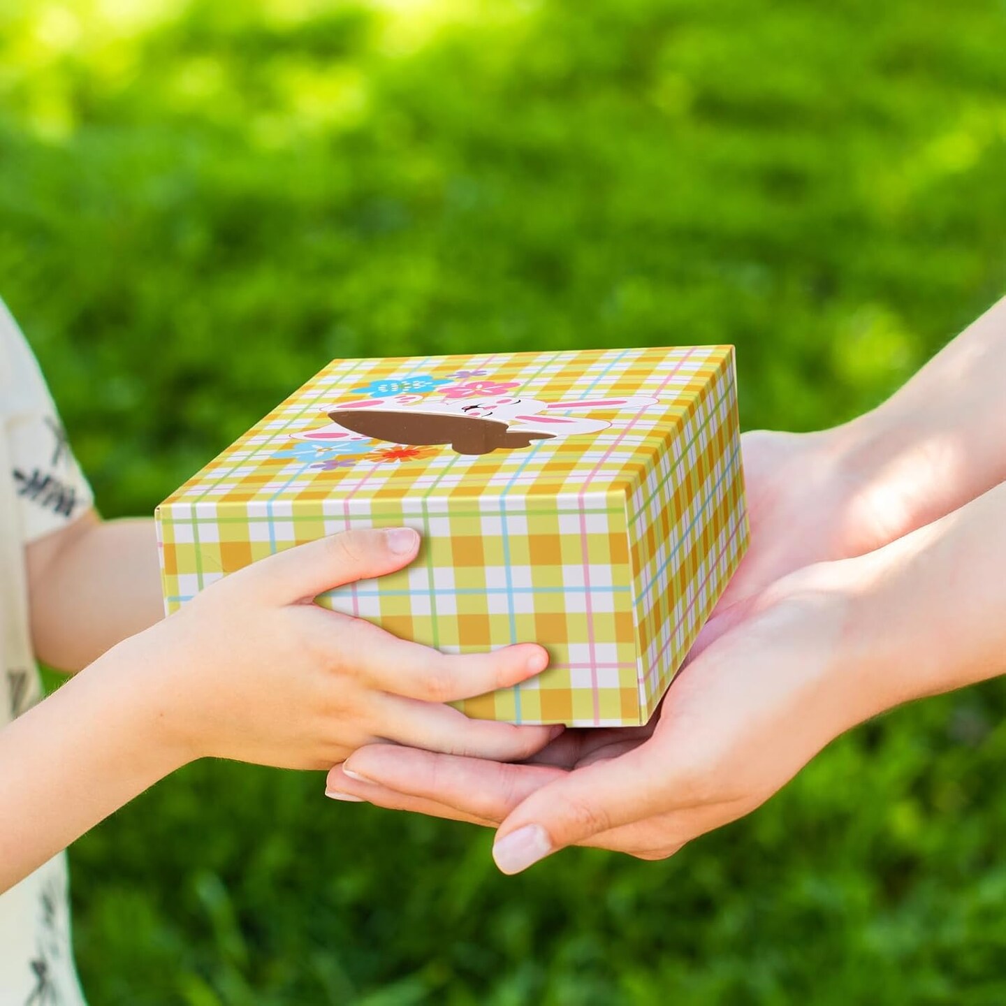 36 Pcs Easter Cookie Boxes Treat Boxes with Shape Window Bunny Egg Flower Cupcake Boxes Cardboard Buffalo Plaids Goody Candy Container Packaging for Happy Easter Party Supplies Favors