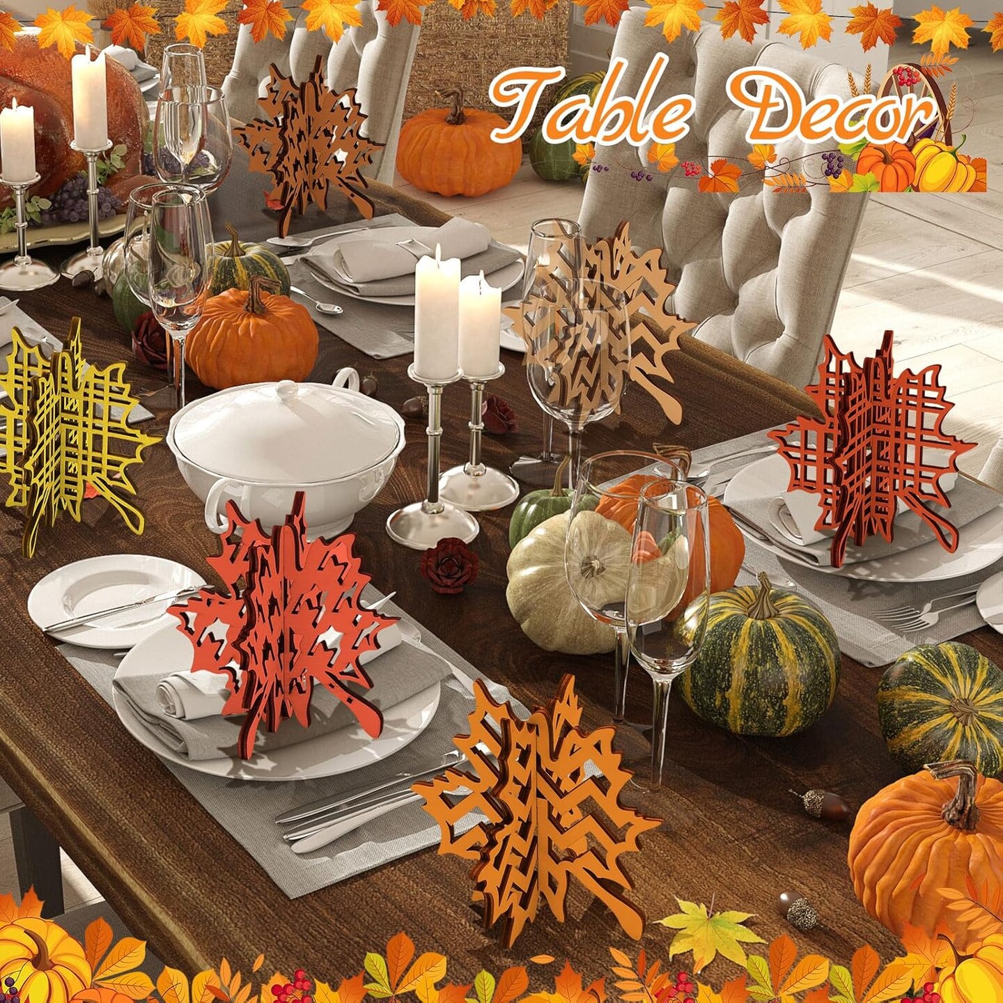 36 Pcs Fall Crafts Set 24 Maple Leaf Wood DIY Crafts Cutouts with 12 Colored