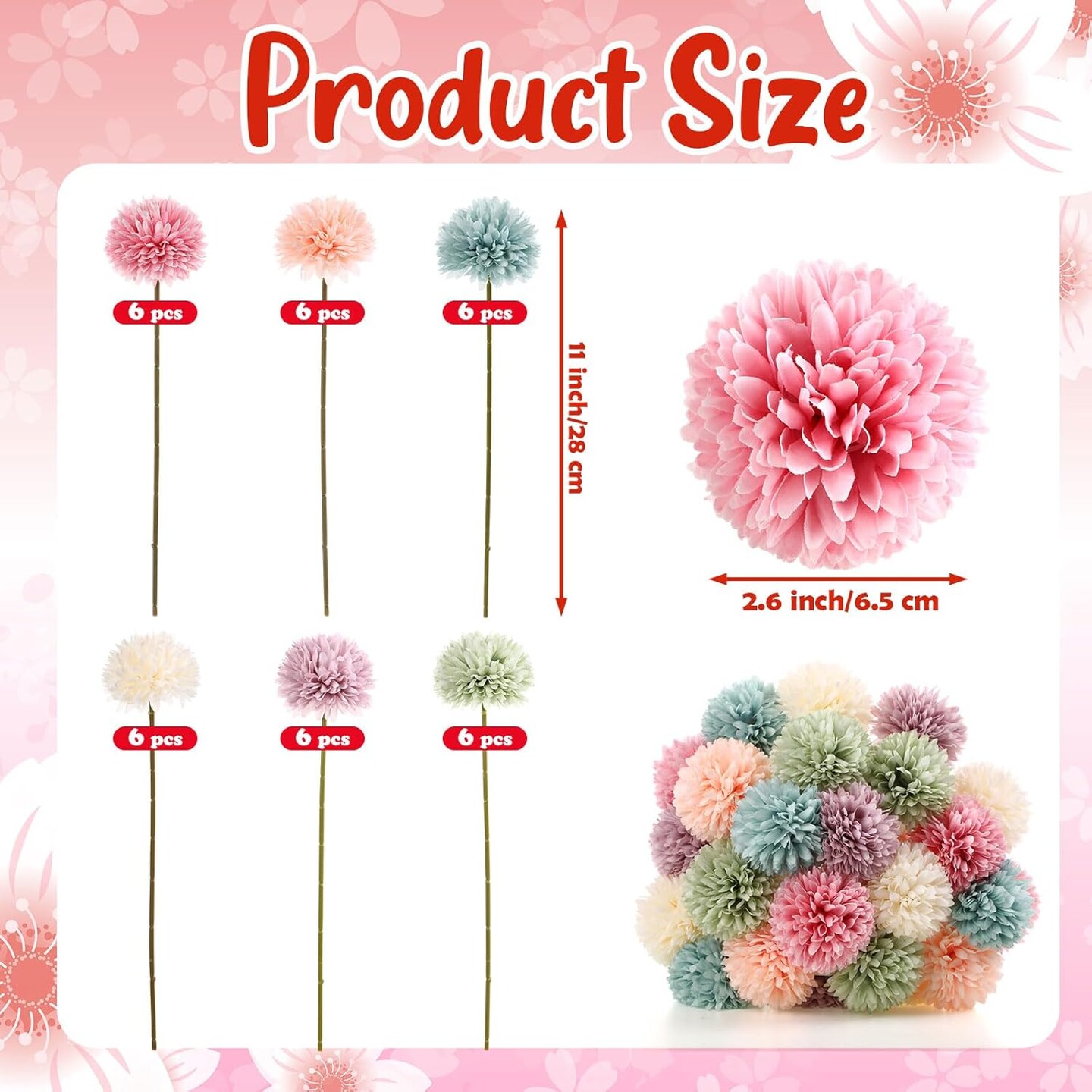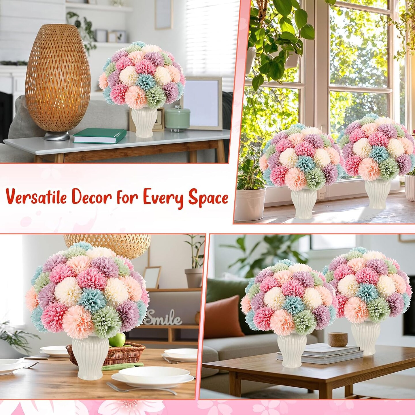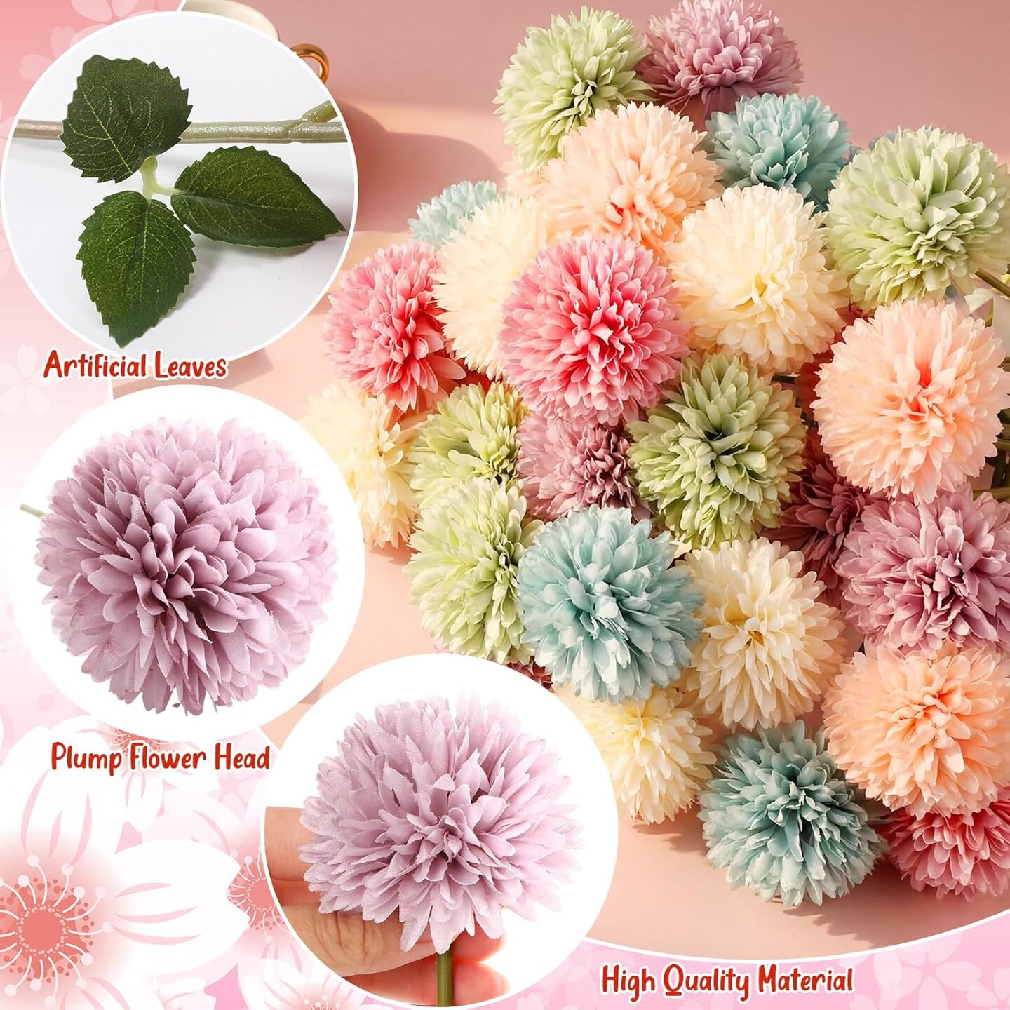 36 Pcs Pastel Artificial Chrysanthemum Flowers Faux Flower Ball Bouquet Silk Fake Marigold Mum for Easter St Patricks Day Spring Wedding Decor Floral Arrangement Table Centerpiece