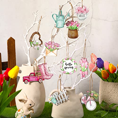 36 Pcs Spring Flower Wooden Ornaments Sunflower Tulip Lavender Tree Decoration Floral Gnome Hanging Wood Cutout Pastel Spring Decor for Home Small Tree Party(Sweet Spring)