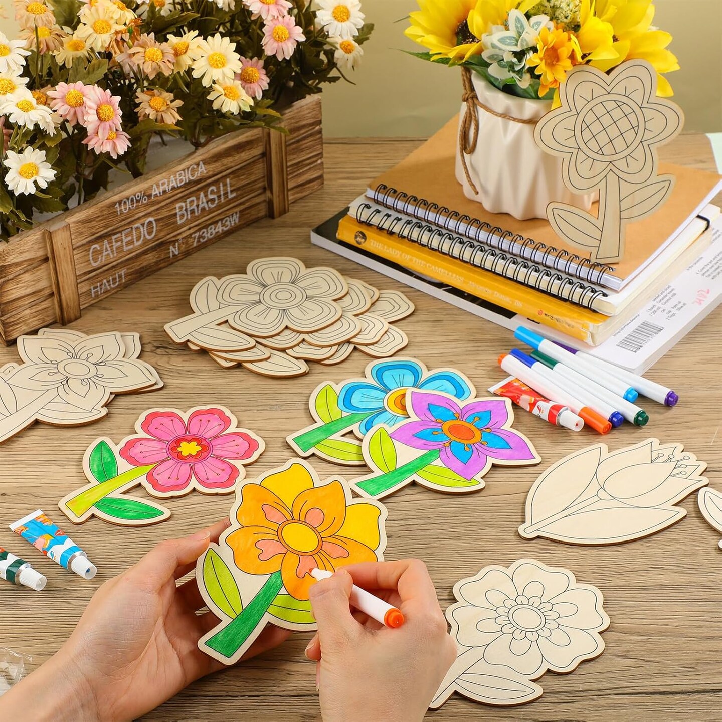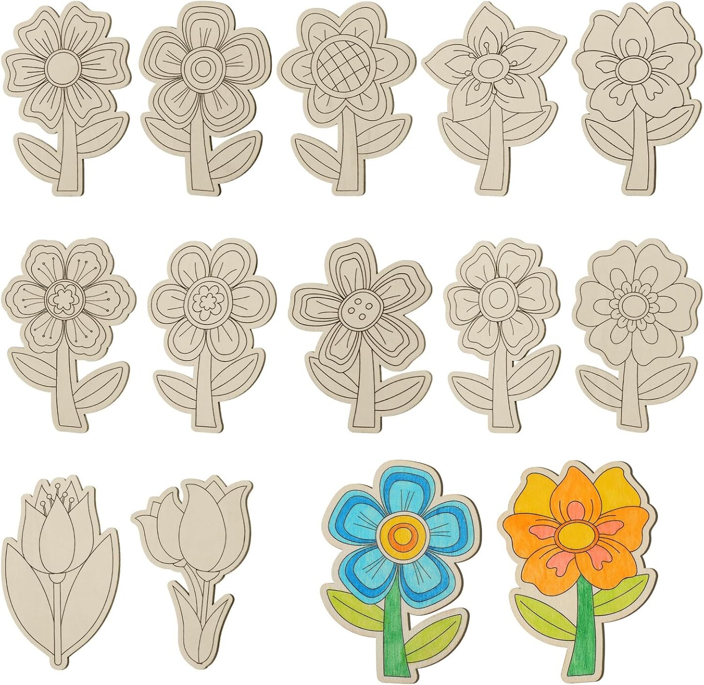 36 Pcs Unfinished Wooden Cutouts Spring Summer Flower Wood Slices Blank Wood Flower Shapes for Kids Painting DIY Crafts Home Activities Arts Crafts Project Decoration