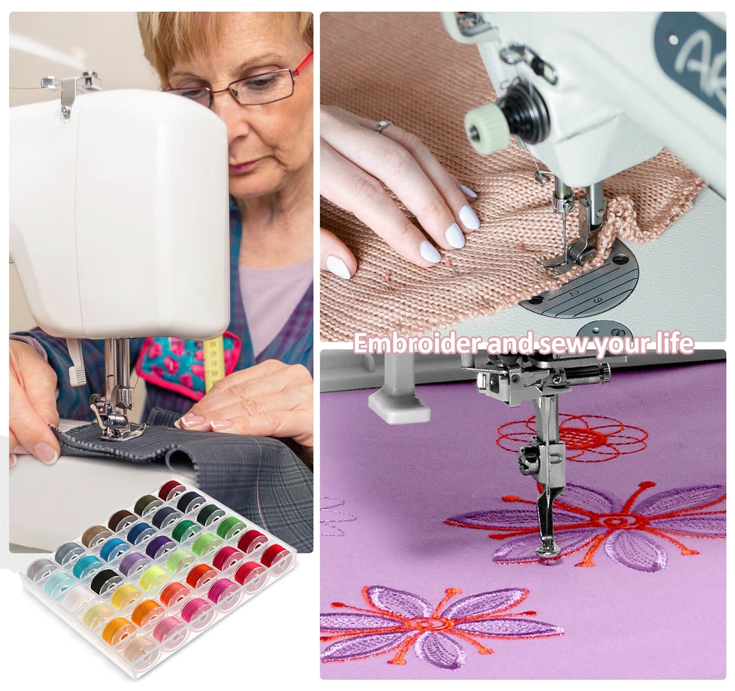 36 Pieces Bobbins Sewing Thread with Bobbin Case, Size A Prewound Sewing Bobbins, Polyester Thread Compatible for Brother/Singer/Babylock/Janome/Elna Embroidery Machine