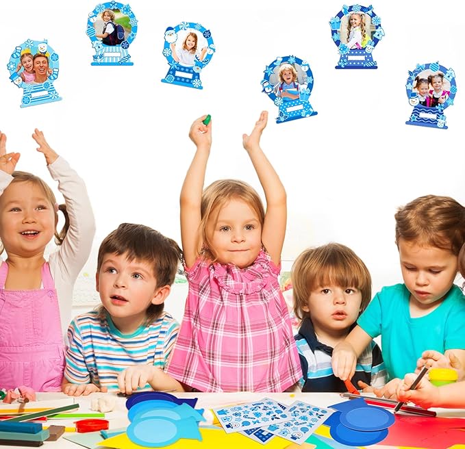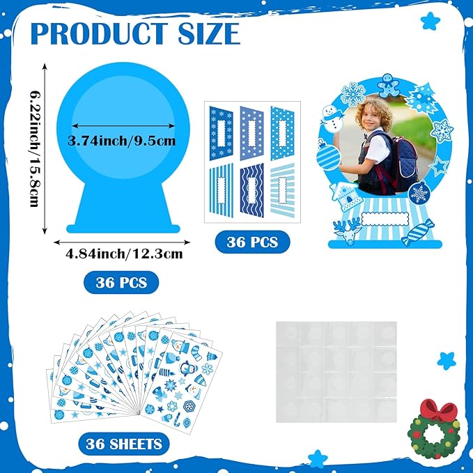 36 Set Snow Picture Frame Craft for Kids Christmas Winter DIY Photo Frames Snow Globe DIY Snowman Snowflake Crafts for Winter Christmas Classroom Toddler Holiday Party Activities