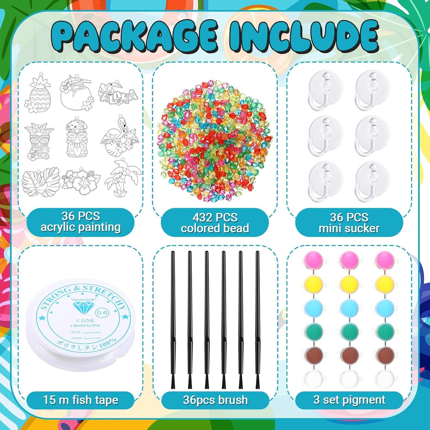 36 Sets Summer Suncatcher Craft Kit Hawaii Aloha Suncatcher Ornament Decor DIY Tropical Window Paint Art Kit Paint Your Own Hawaii Window Art for Classroom Home Summer Birthday Craft Party