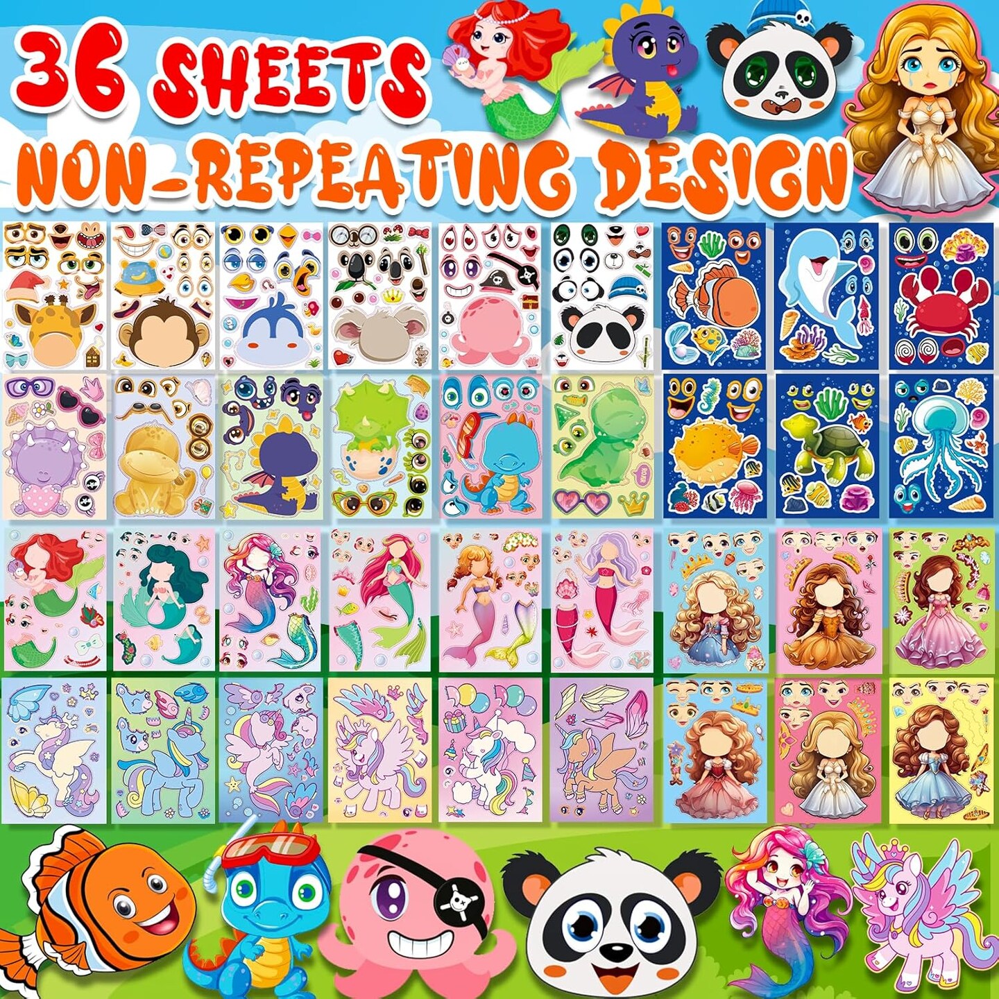 36 Sheets Mixed Non-Repeating Make a Face Stickers