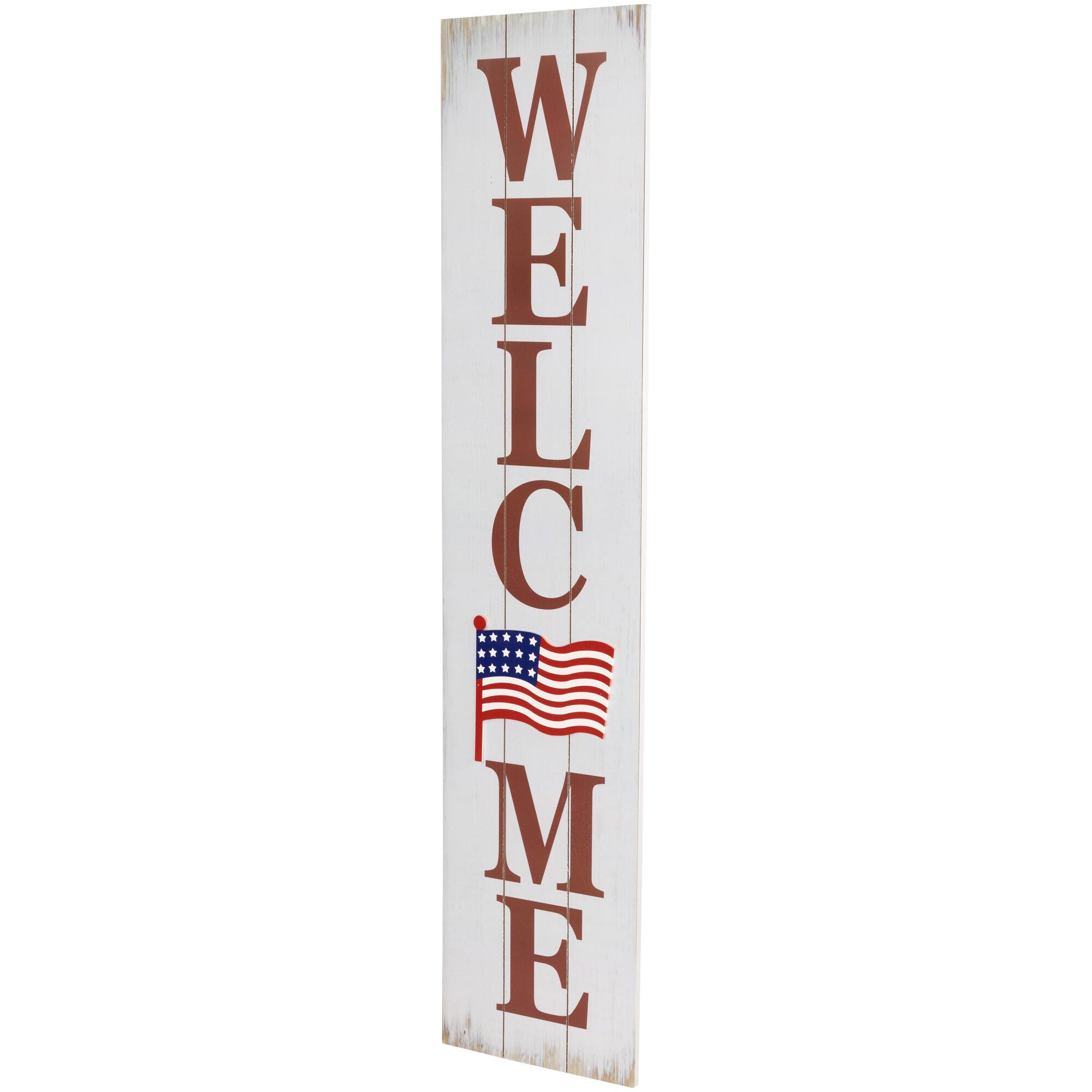 36" Welcome USA Flag Americana Wooden Porch Board Sign Decoration