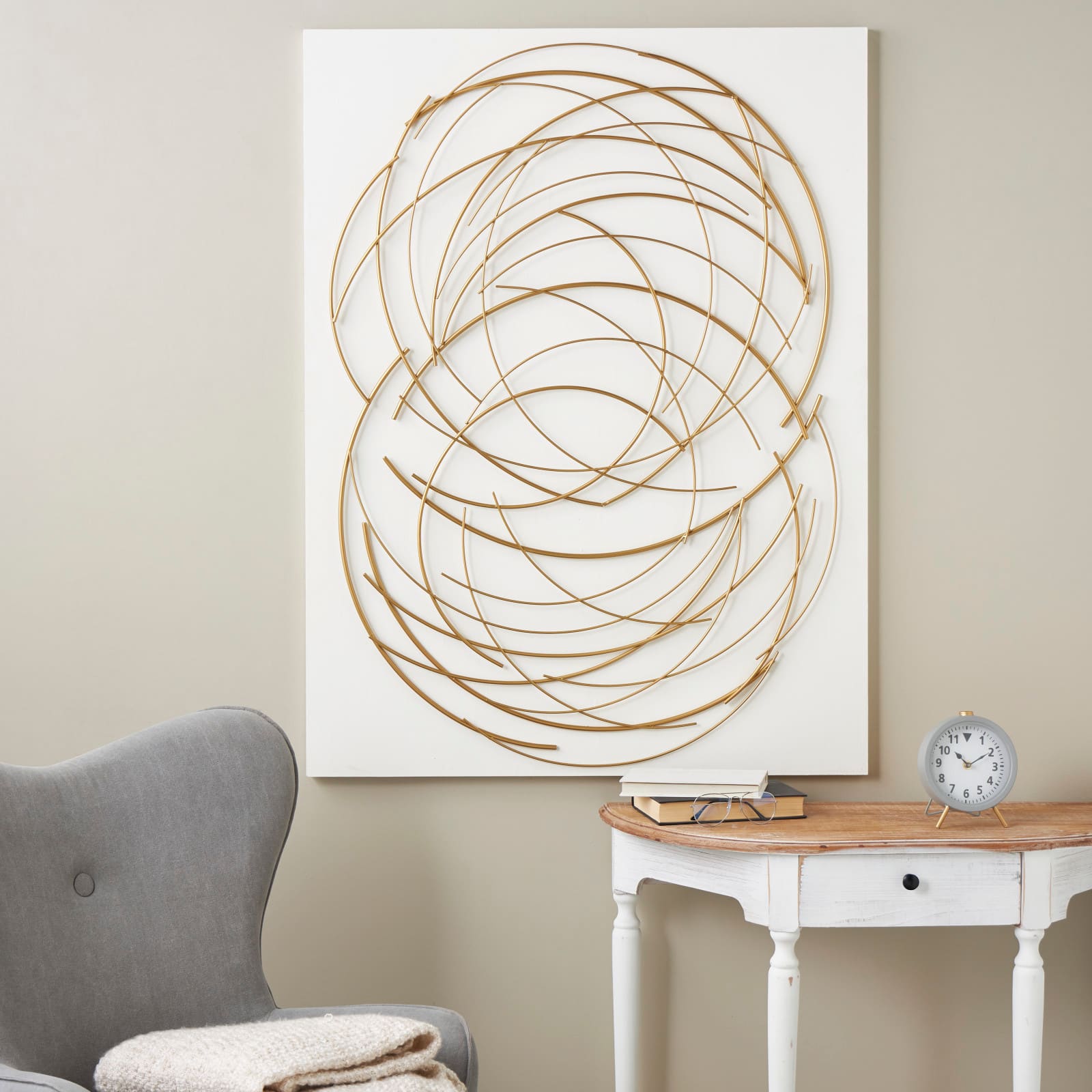 36" x 48" Gold Metal Circle Wall Art with White Wood Backing